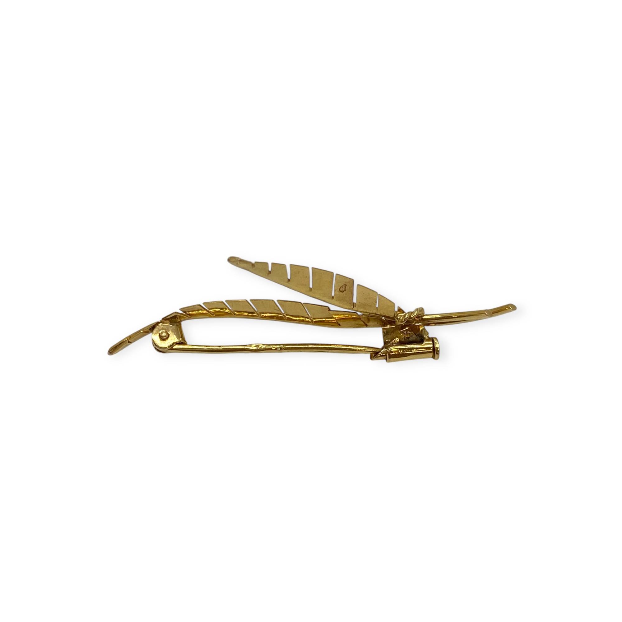 Broche élégante en forme de feuilles, réalisée en or jaune 750/1000 (18k). Travail ajouré et finement gravé, offrant un rendu léger et lumineux. Idéale pour accessoiriser une veste, un manteau ou une écharpe avec une touche vintage chic.