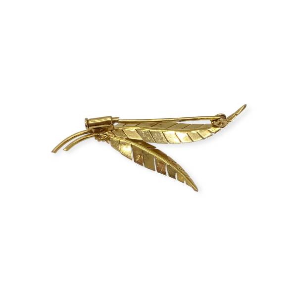 1 075,00 €Broche vintage en or 750/1000, motif végétal sculpté, diamant discret, esprit joaillerie des années 70.