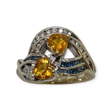 | Nombre de pierres | : | 2 citrines coeur 14 oxydes bleus ronds 23 diamants ronds de 0.005 ct |