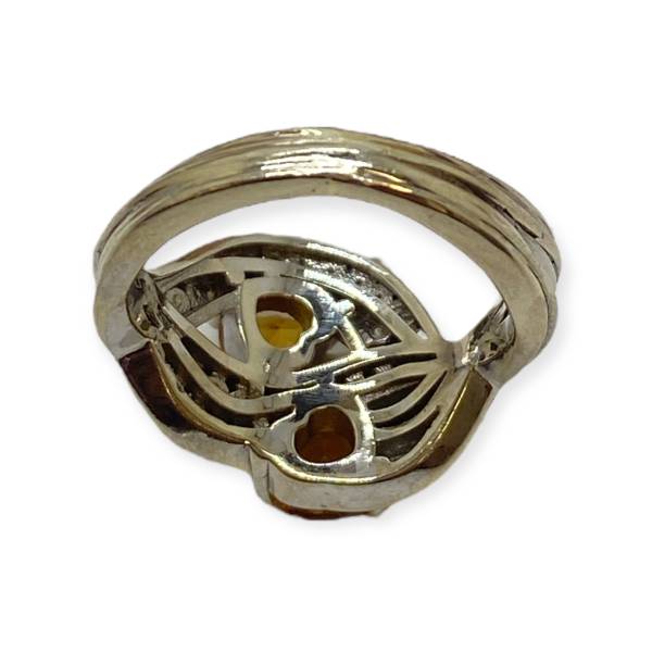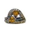 Sublime bague en or blanc 585/1000 (14K) avec des oxydes bleus, des citrines et des diamants.