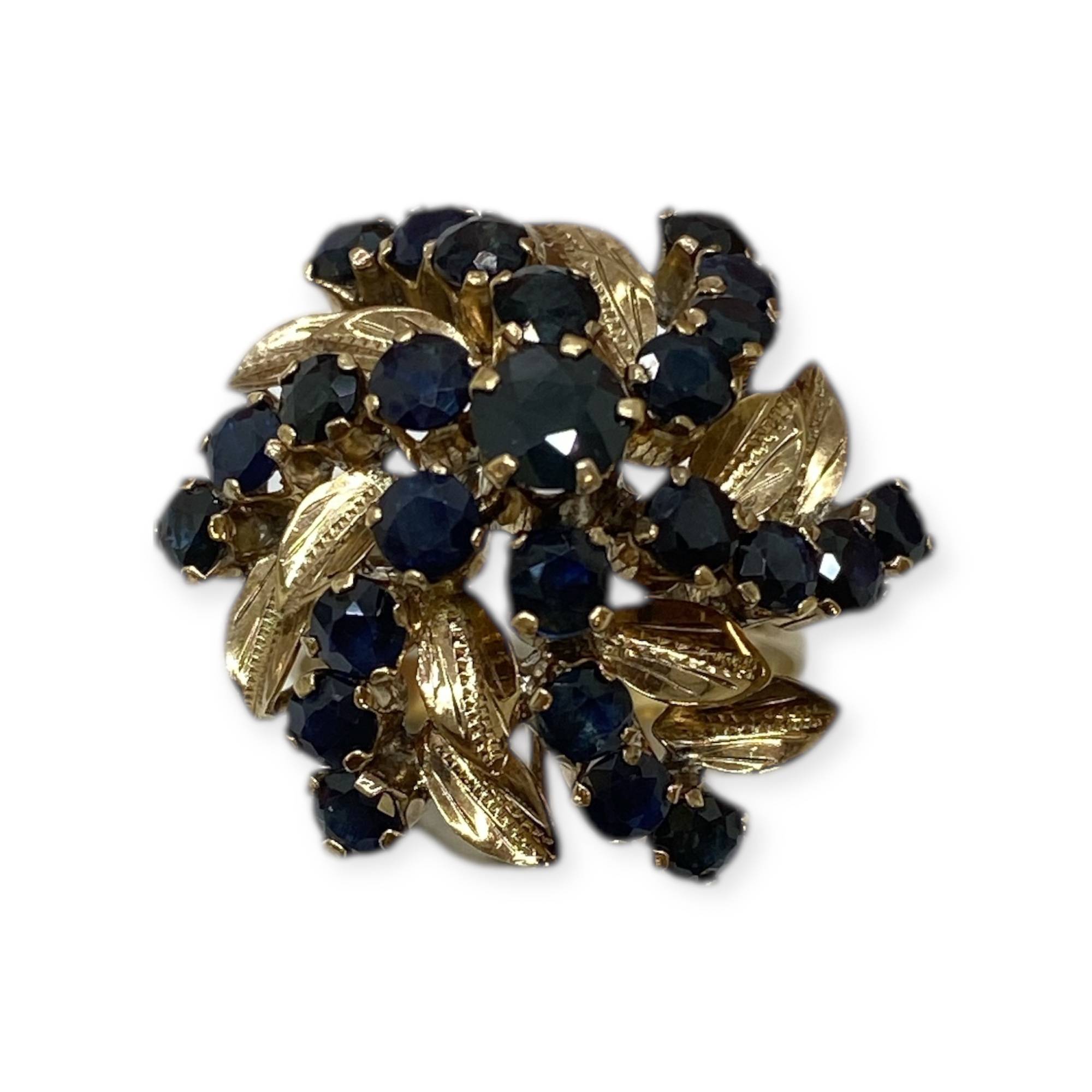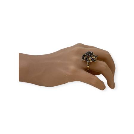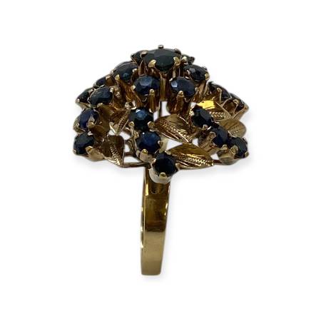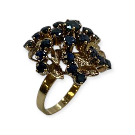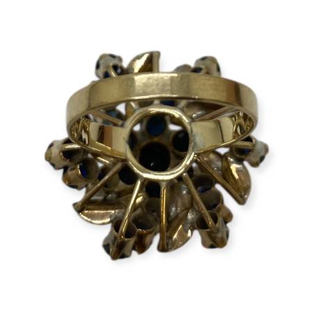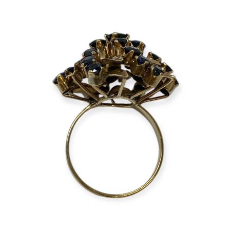 Sublime et originale bague en forme de fleur avec des pierres type saphir en or 375/1000 (9K)