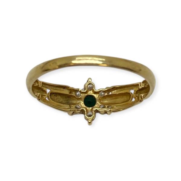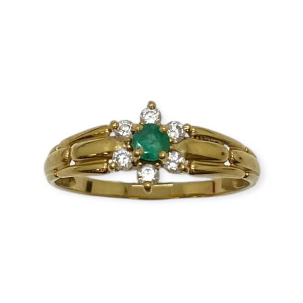Bague fleur EN OR 750/1000 (18K) avec des oxydes et une émeraude