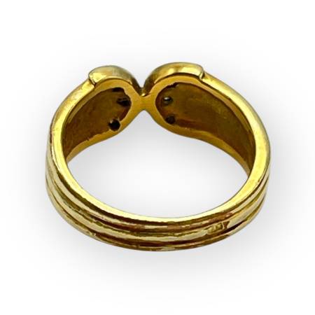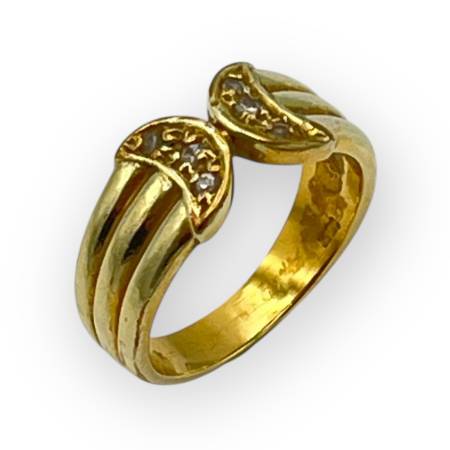 Adorable bague en or 750/100 avec deux demi-lunes dos à dos serties d'oxydes de zirconium