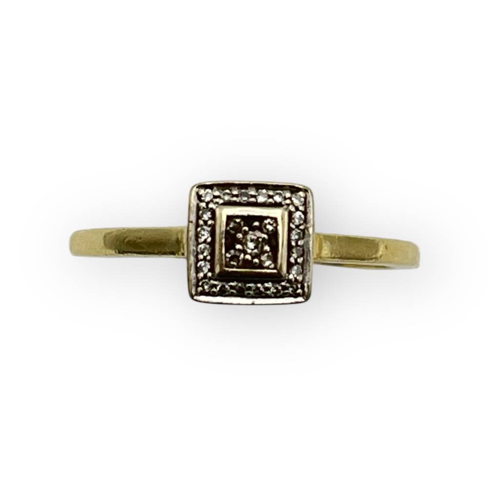 Bague deux ors 750 et carré de diamants