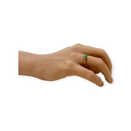 Succombez à cette sublime bague en or 585/1000 (14k) ornée d'une pierre verte type jade et de 6 oxydes de zirconium.