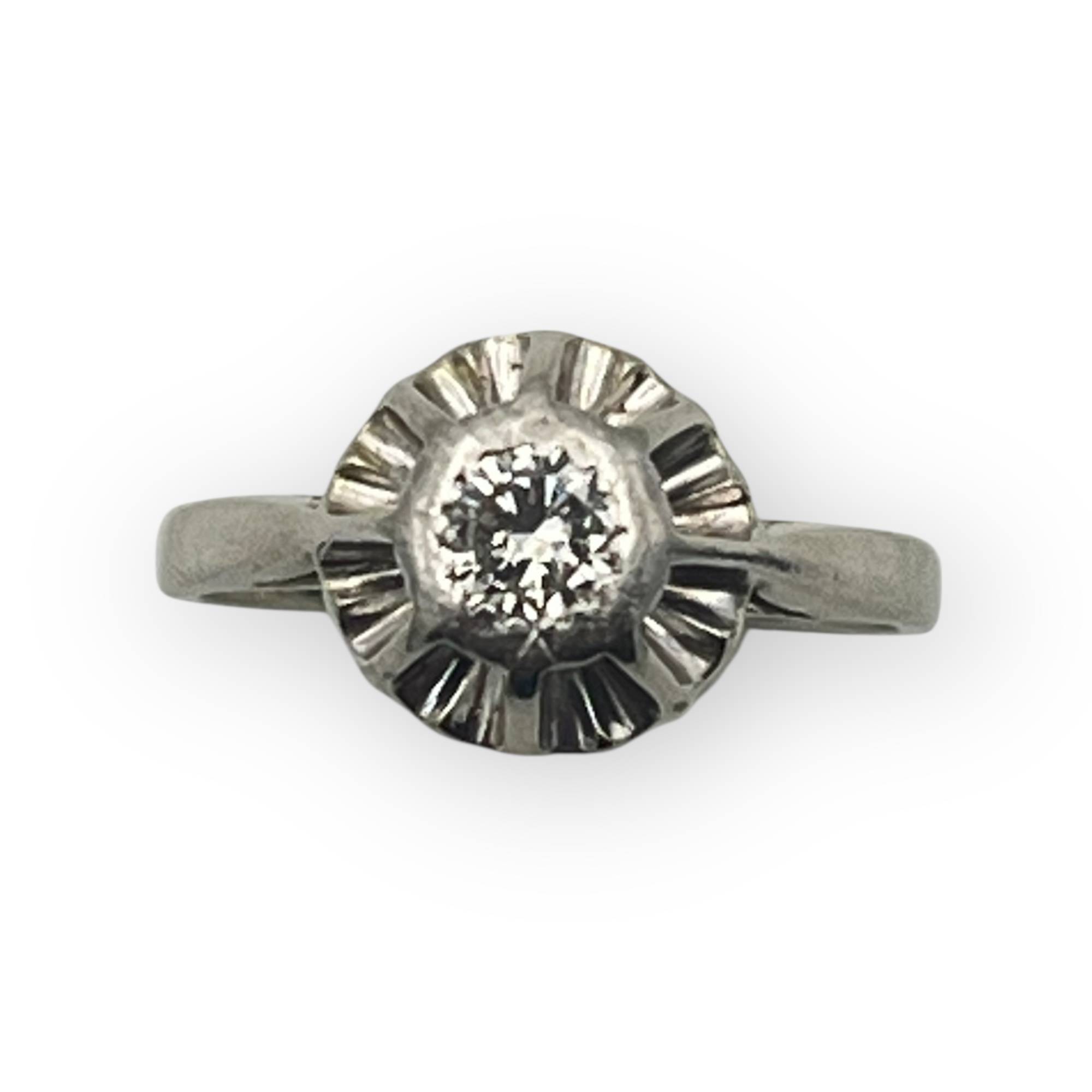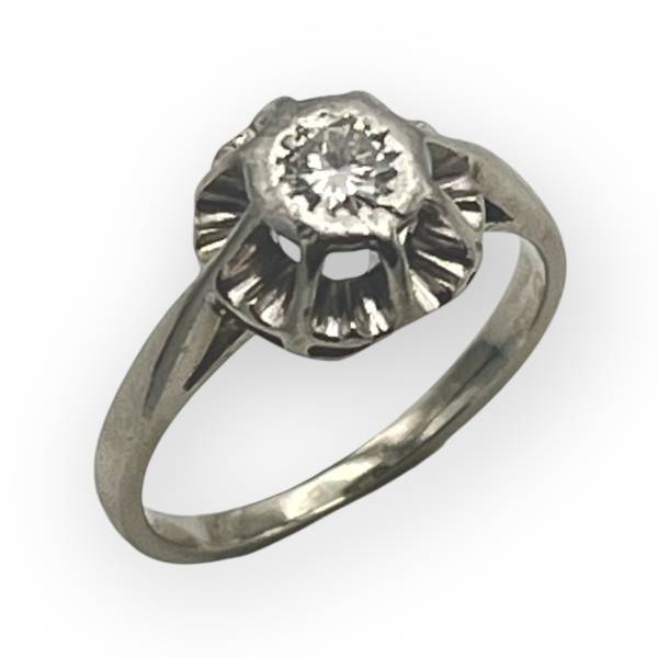 Splendide bague en or blanc 750/1000 sertie d'un diamant de 0.12 ct taille moderne .