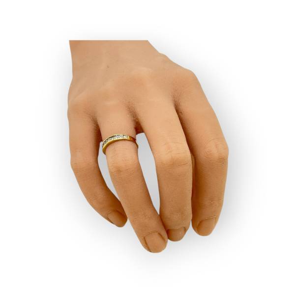 499,00 €Très jolie bague Tank en or rose 750/1000 sertie de 7 diamants taille moderne