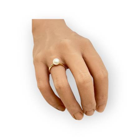 Et voilà une très belle bague en or 750/1000 sertie d'une perle de culture.