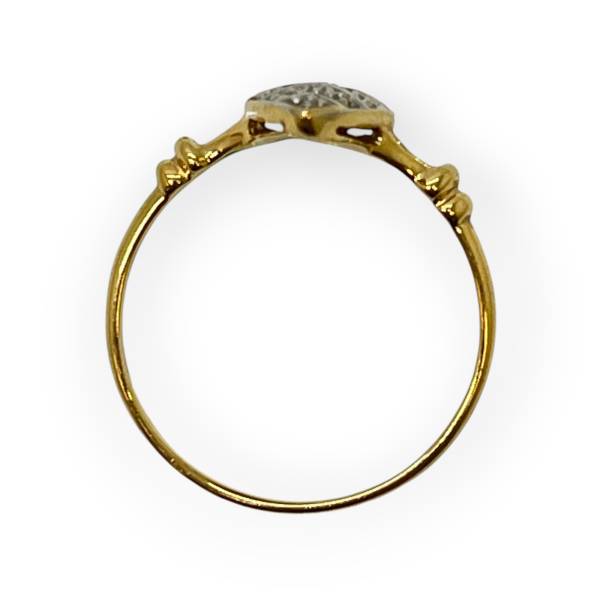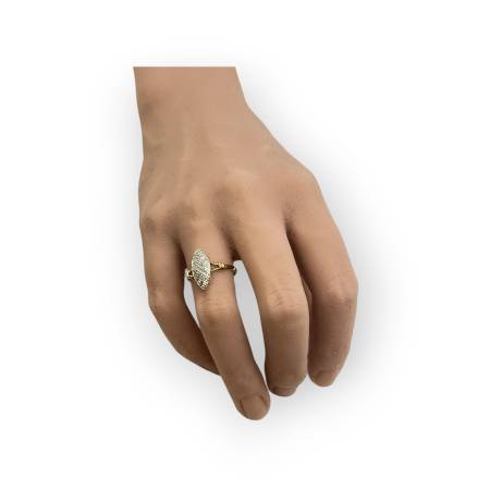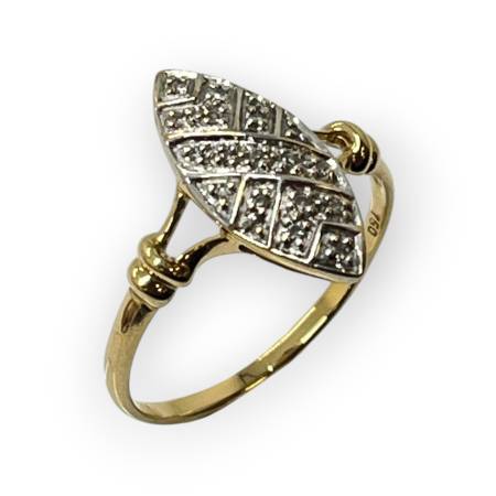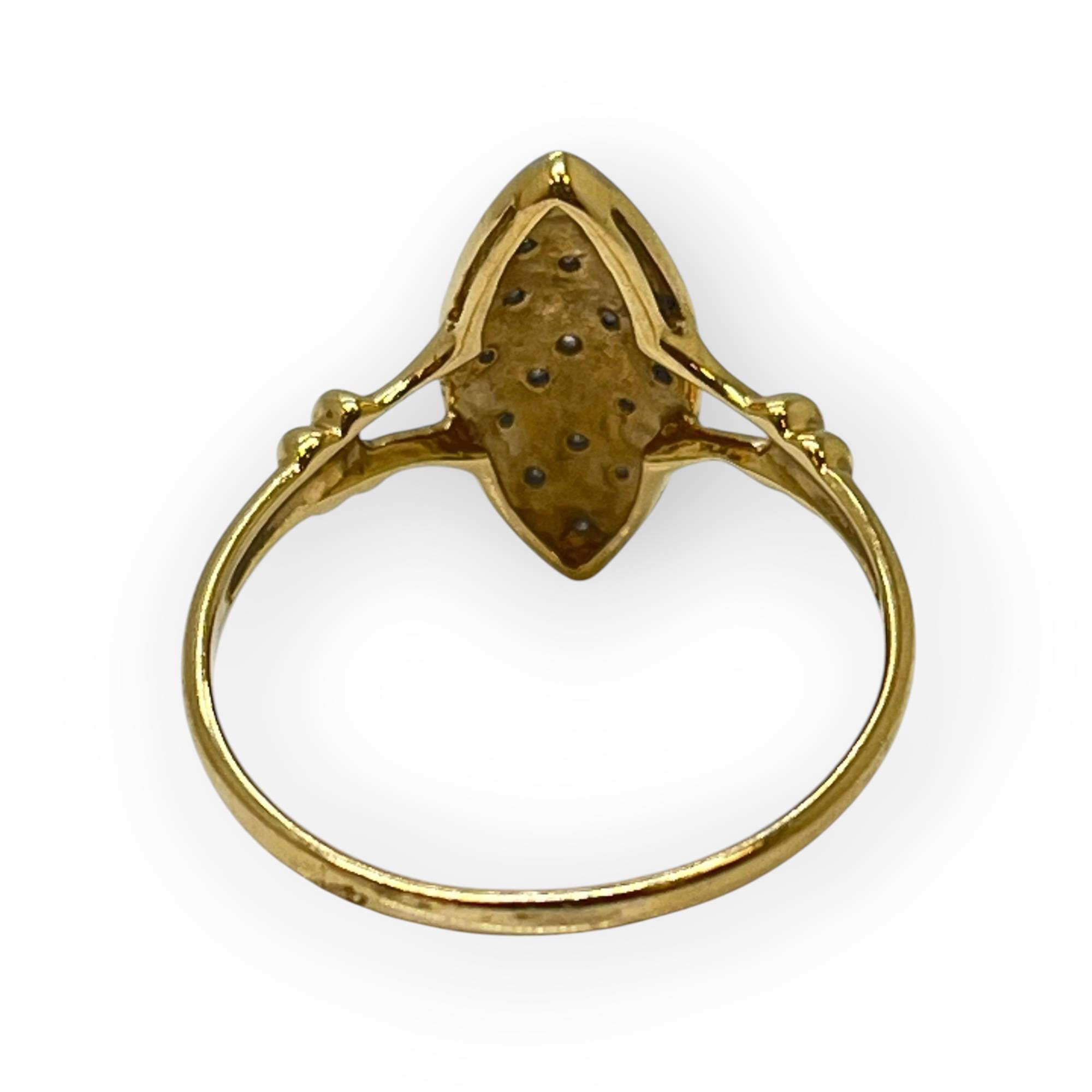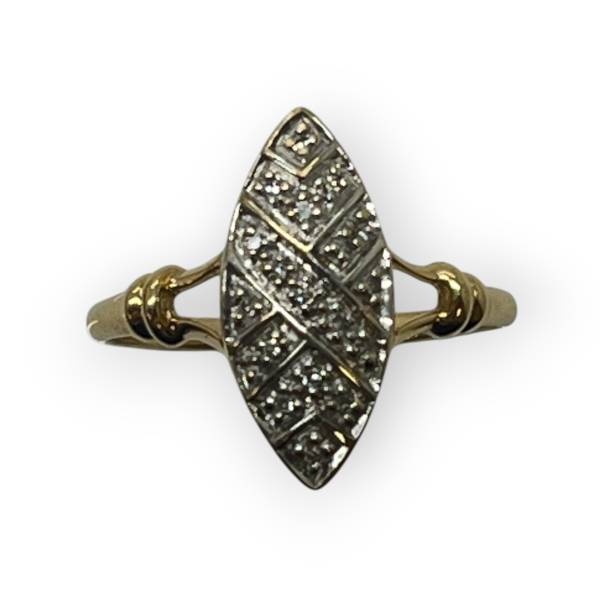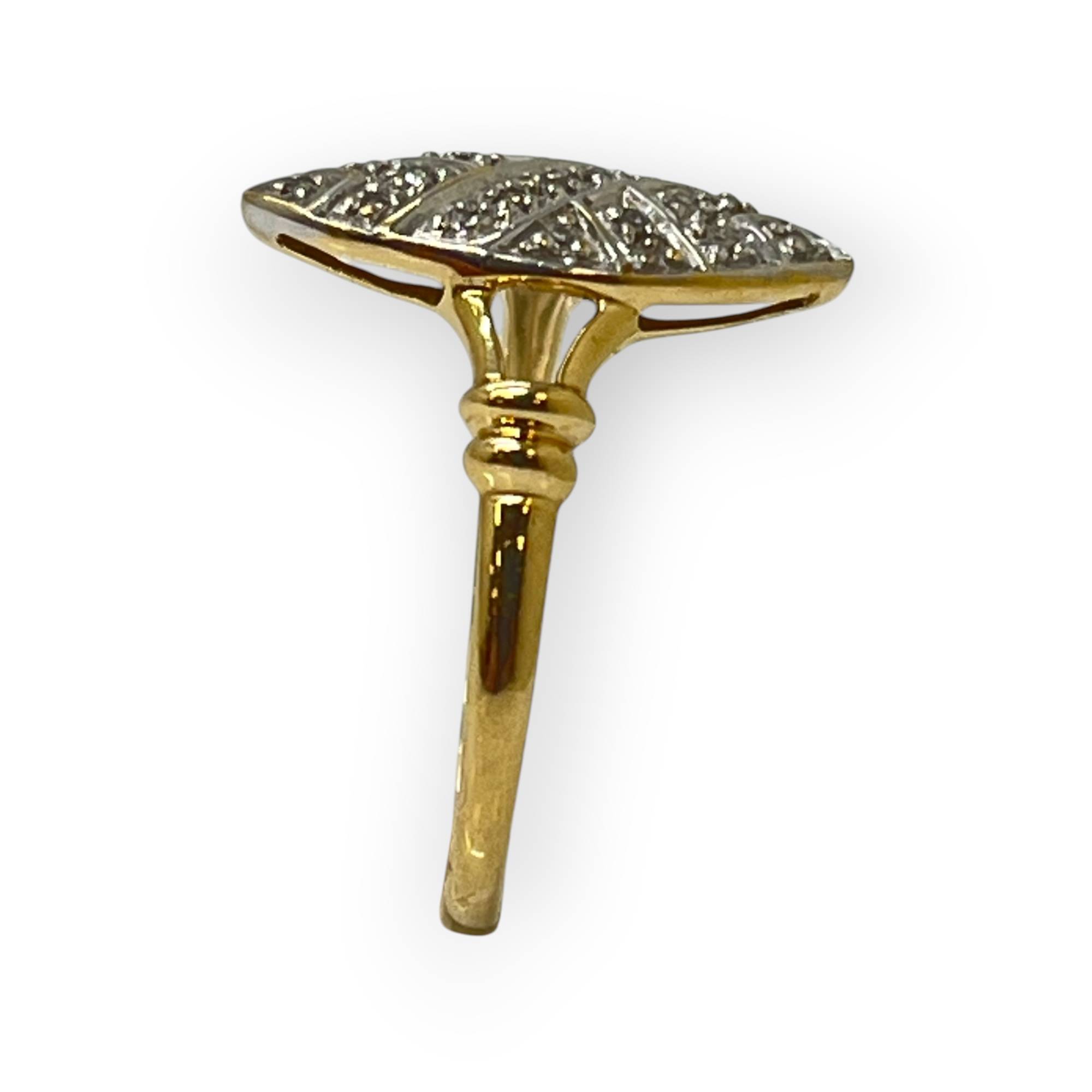 Cette jolie bague en or 750/1000 en forme de marquise est sertie de 18 diamants.