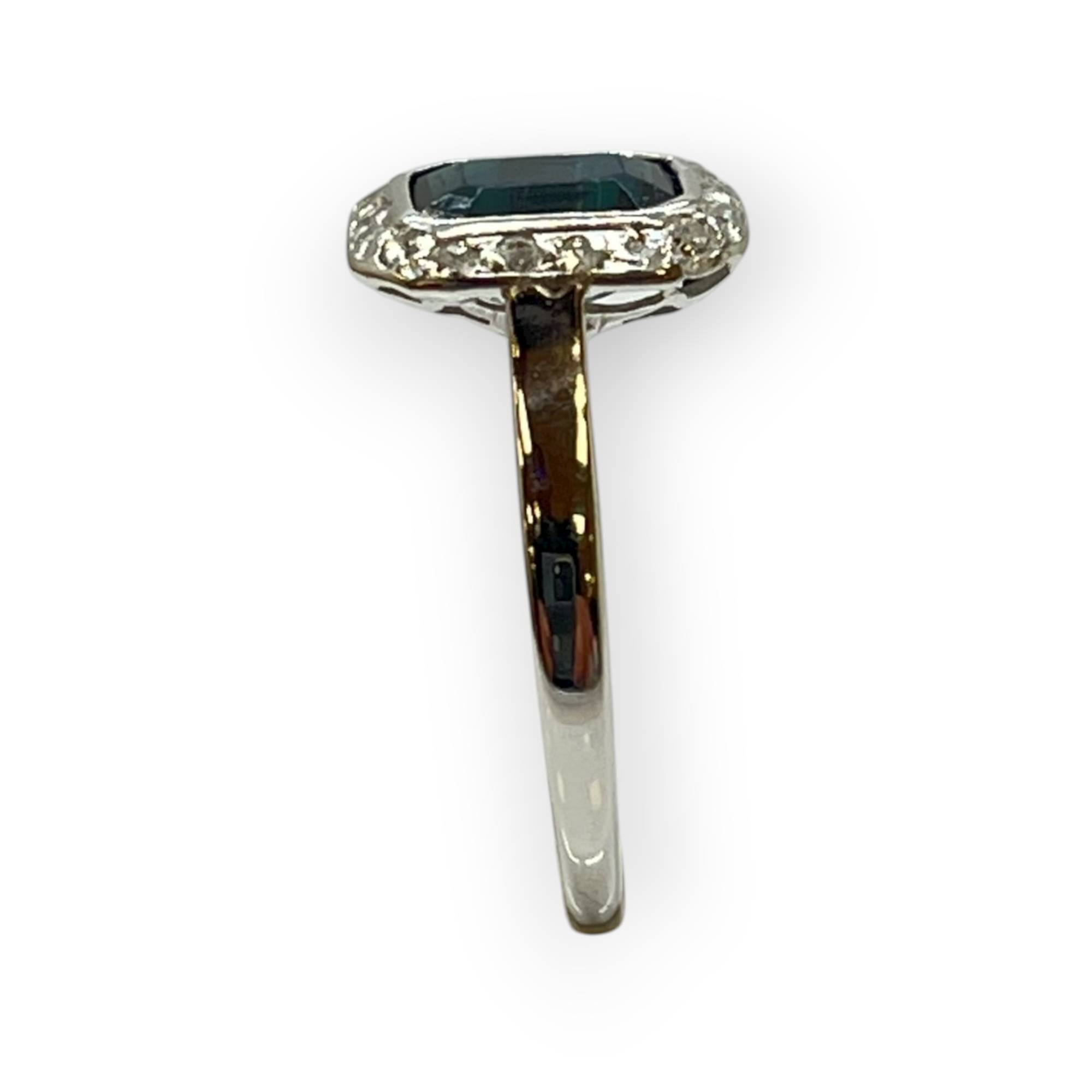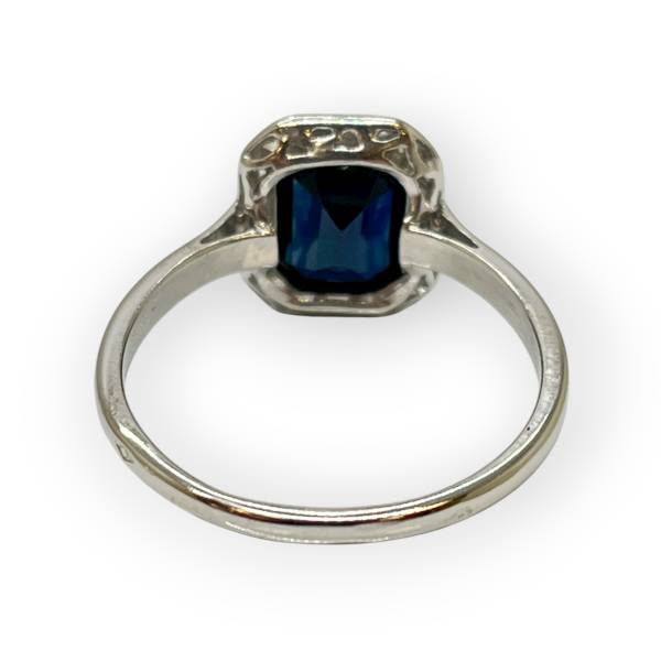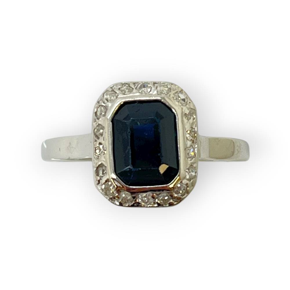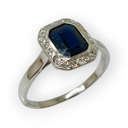 Bague or blanc 750 pierre bleue et diamants