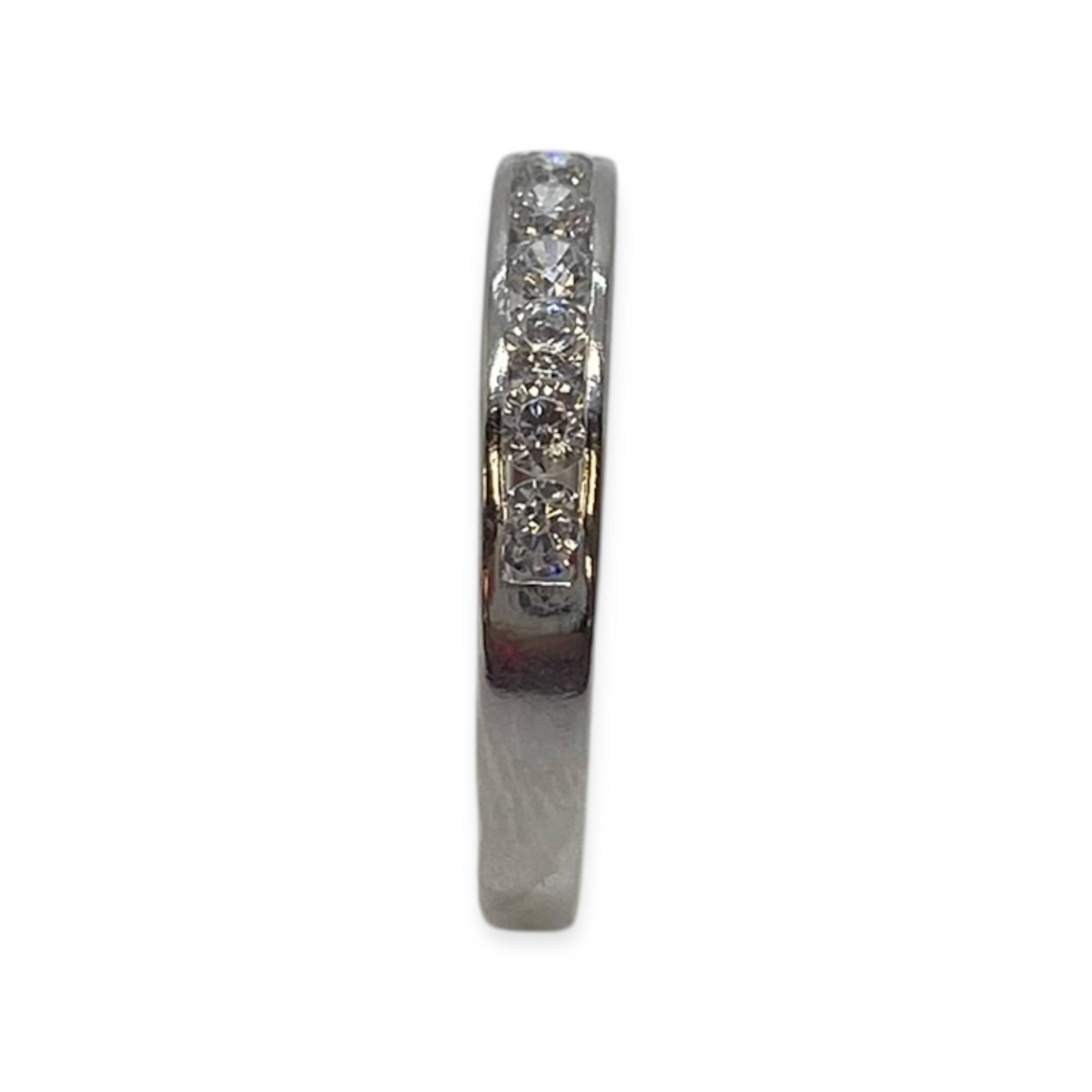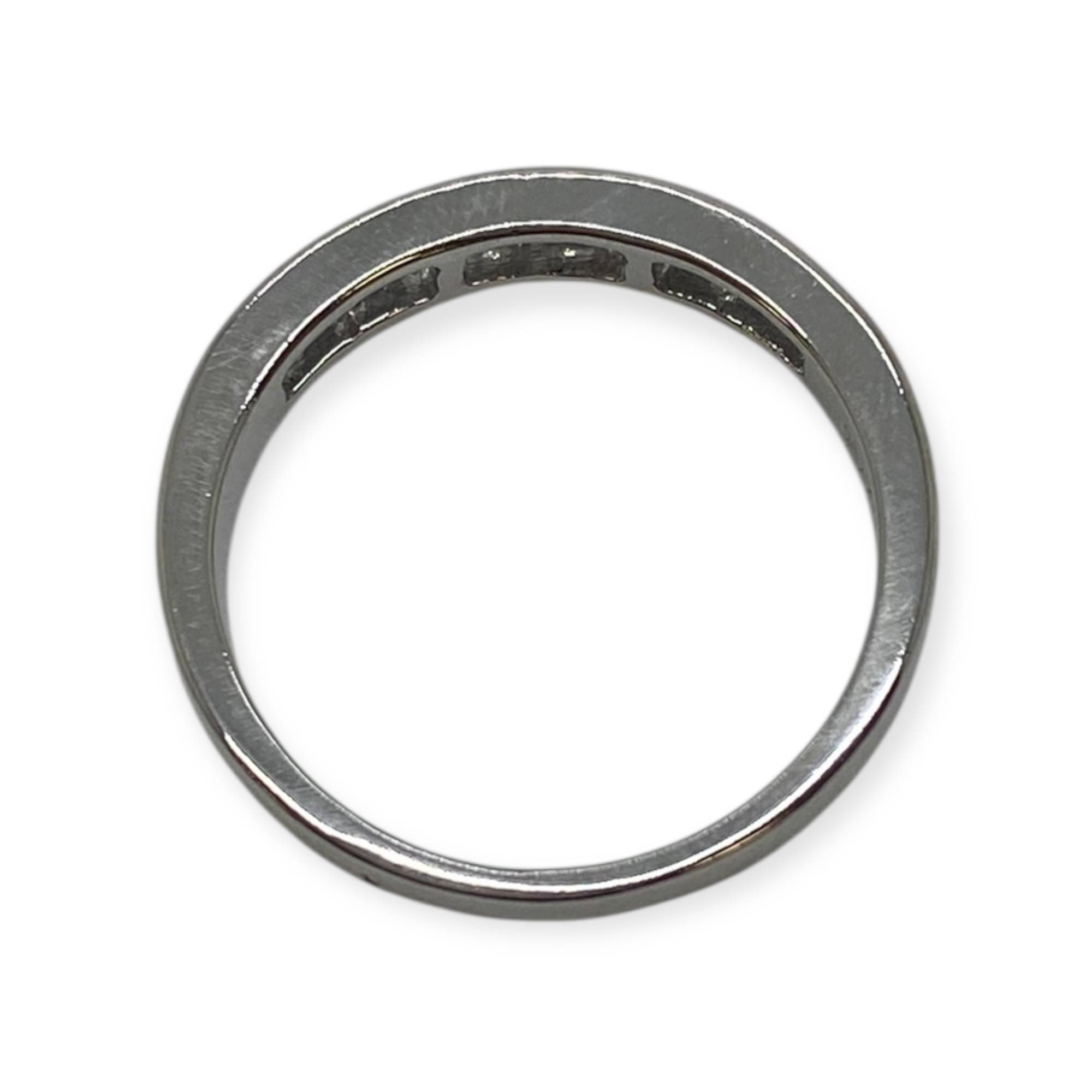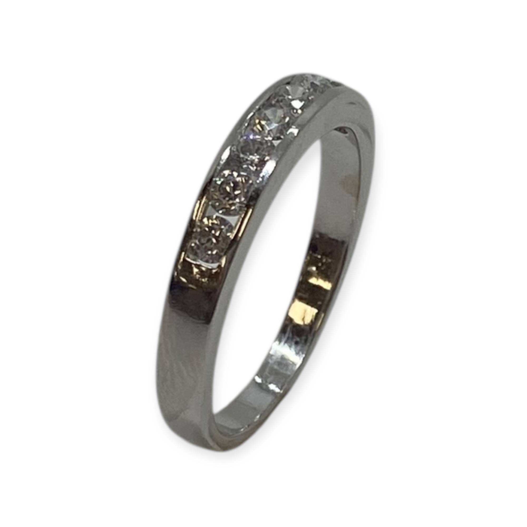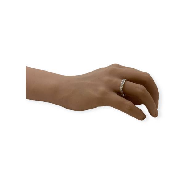 Jolie alliance en or blanc 750/1000 (18K) avec un demi tour en oxydes de zirconium