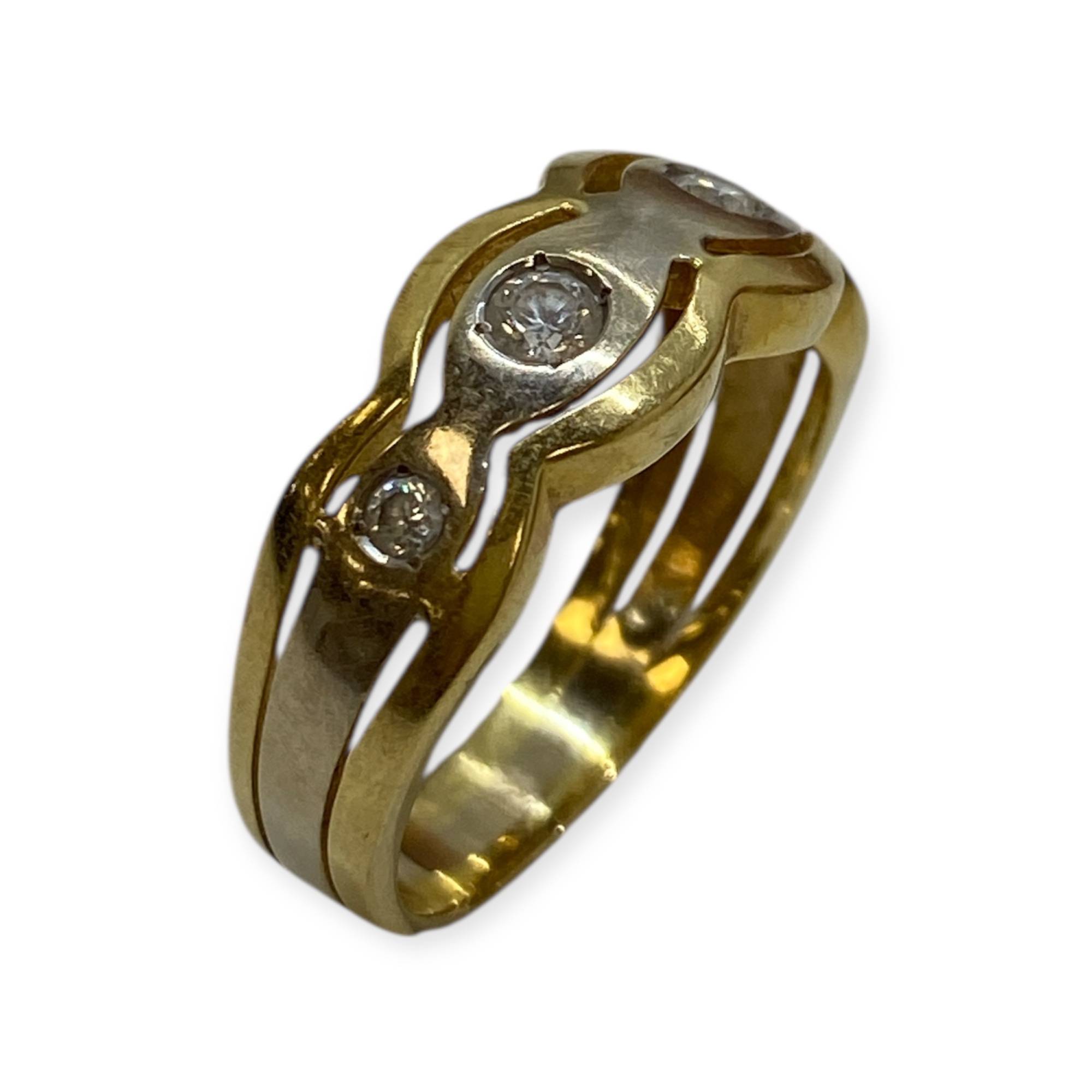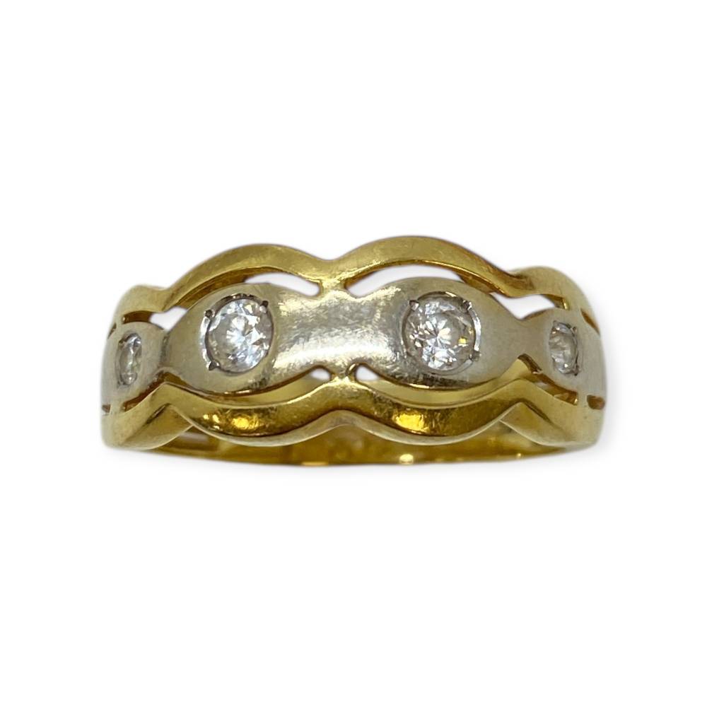 Belle bague en deux ors 750/1000 (18K) avec des oxydes de zirconium.
