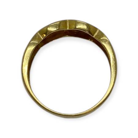 279,00 €Très moderne, cette bague en or jaune 18 carats constituée d'un anneau large mais peu épais (donc confortable !) et travaillé avec un motif ciselé !