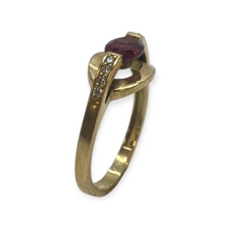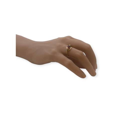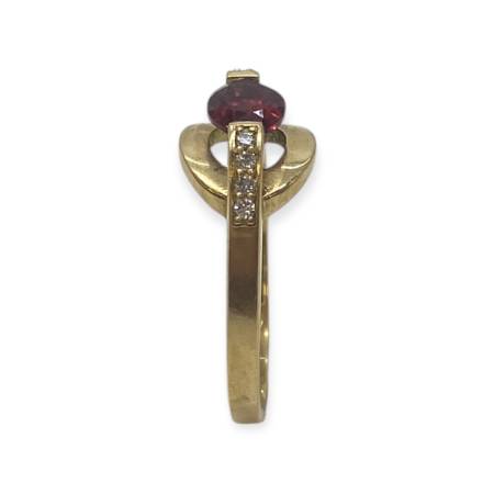 Bague pierre rouge type grenat et diamants en or 750/1000 (18k)