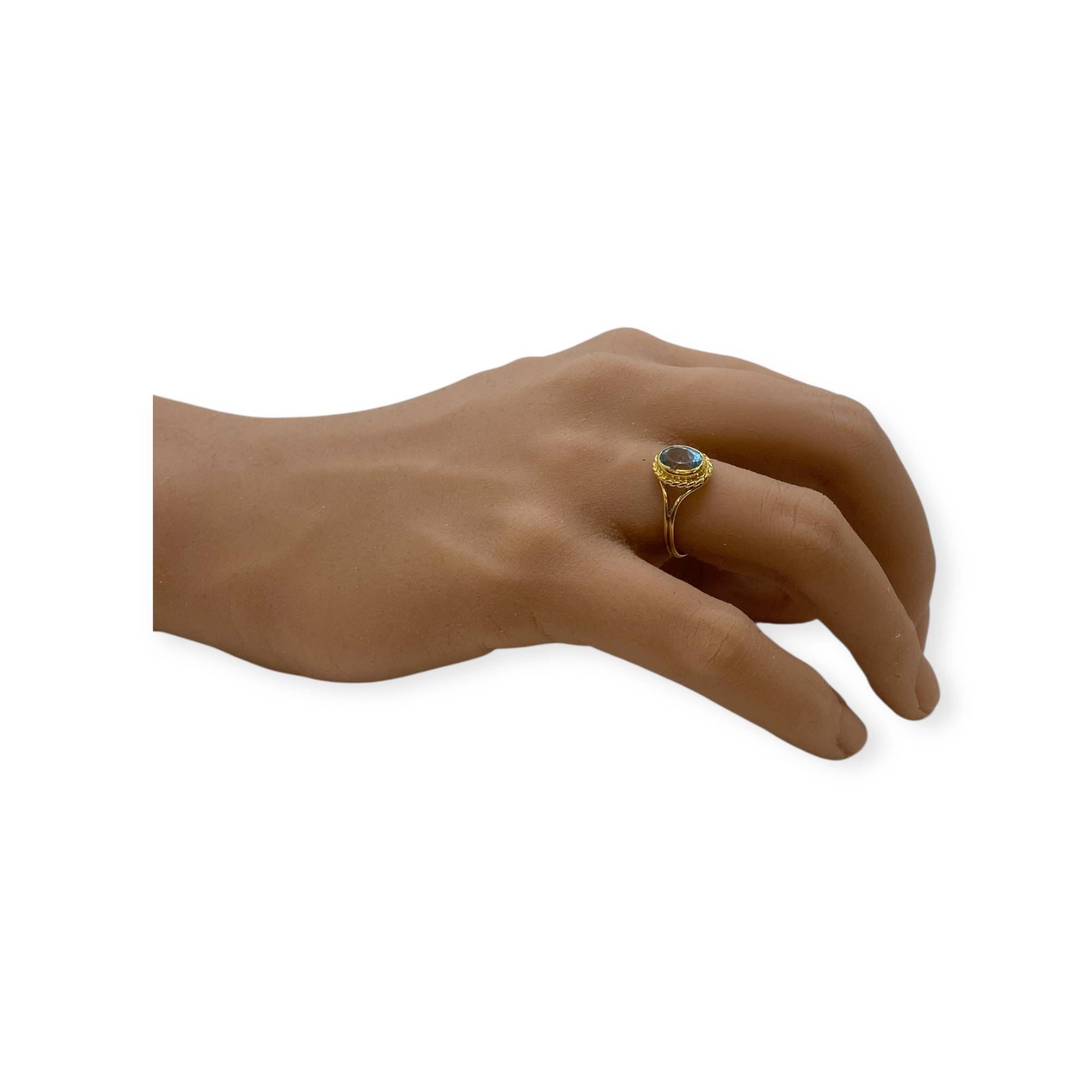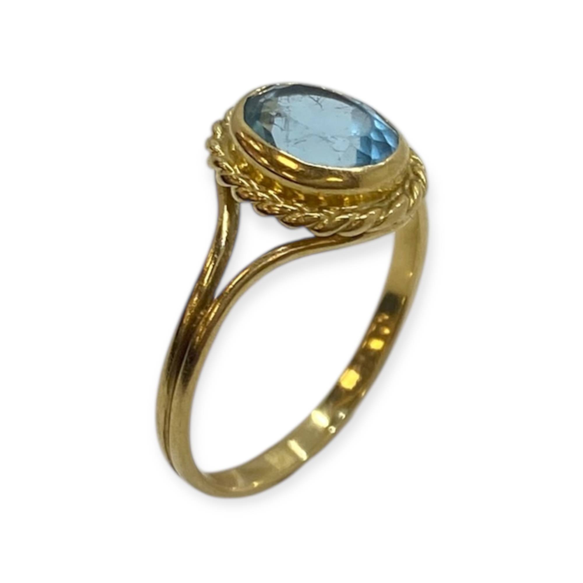 Ravissante bague en or 750/1000 (18k) avec une topaze bleue aux contours travaillés !