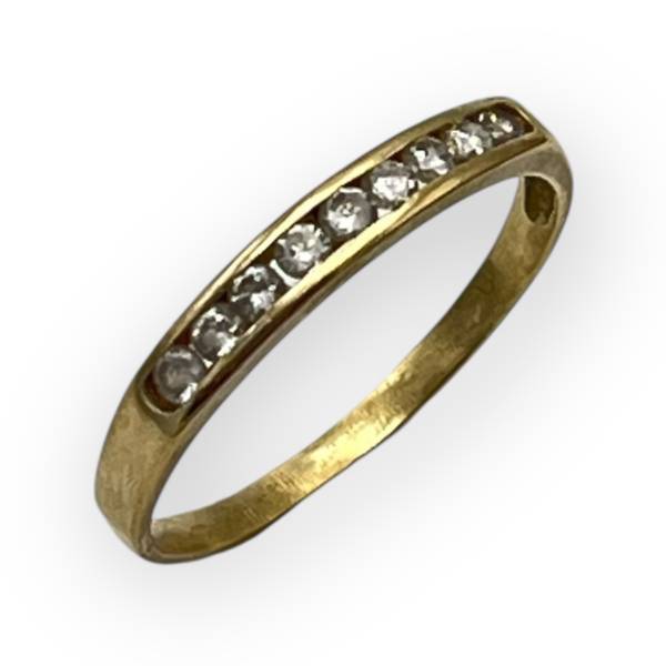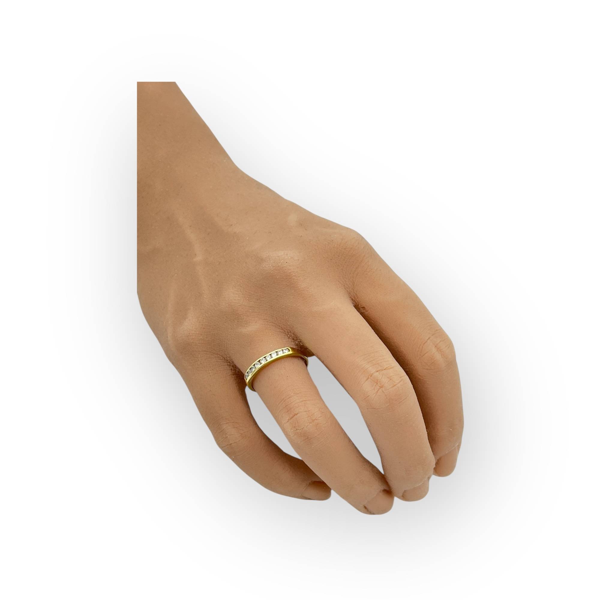 Une adorable bague forme demi alliance en or jaune 750/1000 sertie d'oxydes de zirconium.