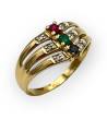 | Hauteur x largeur pierre en mm | : | 6 diamants de 1 mm rubis,émeraude et saphir ronds de 1.6 mm |