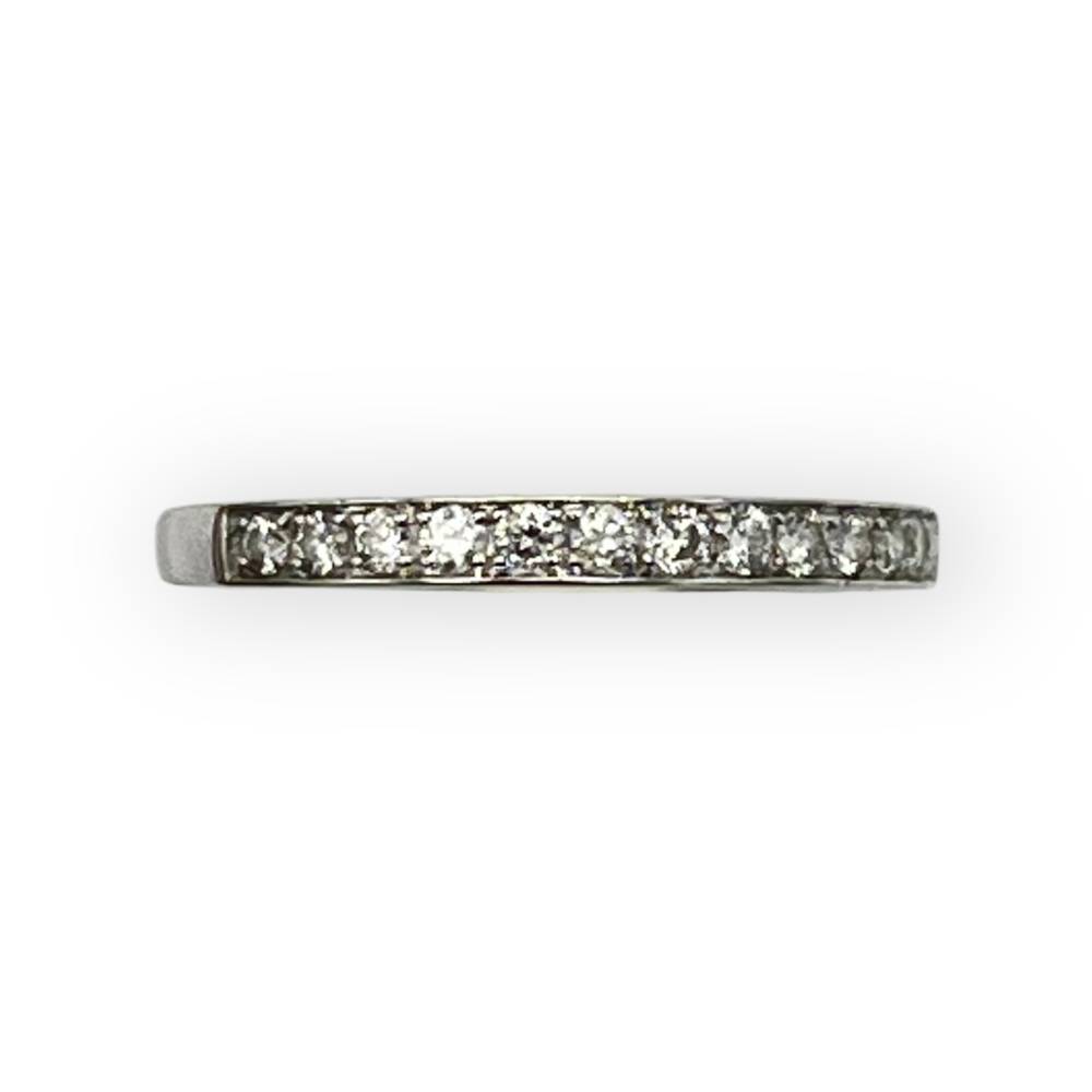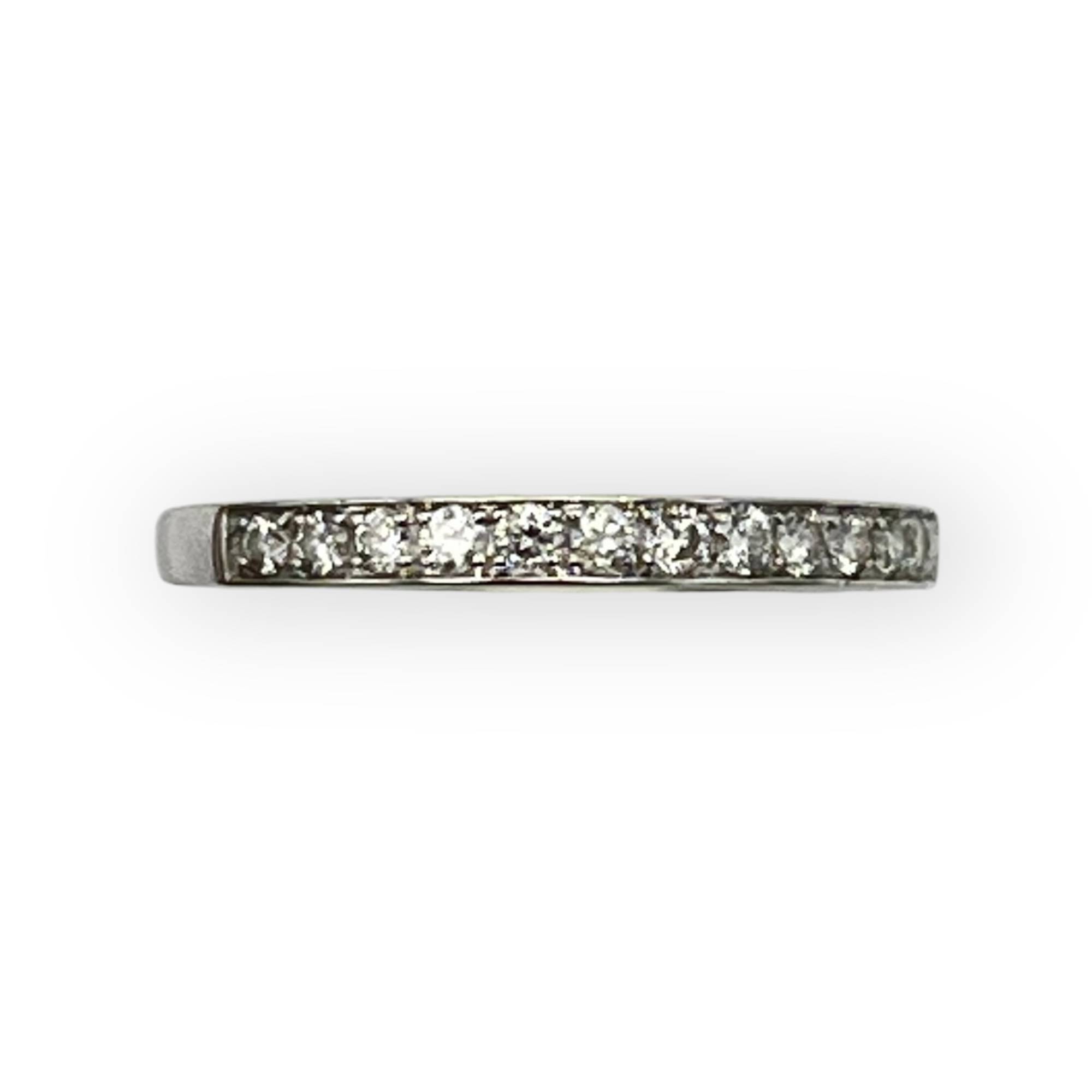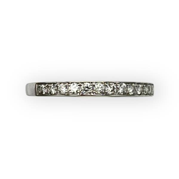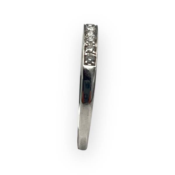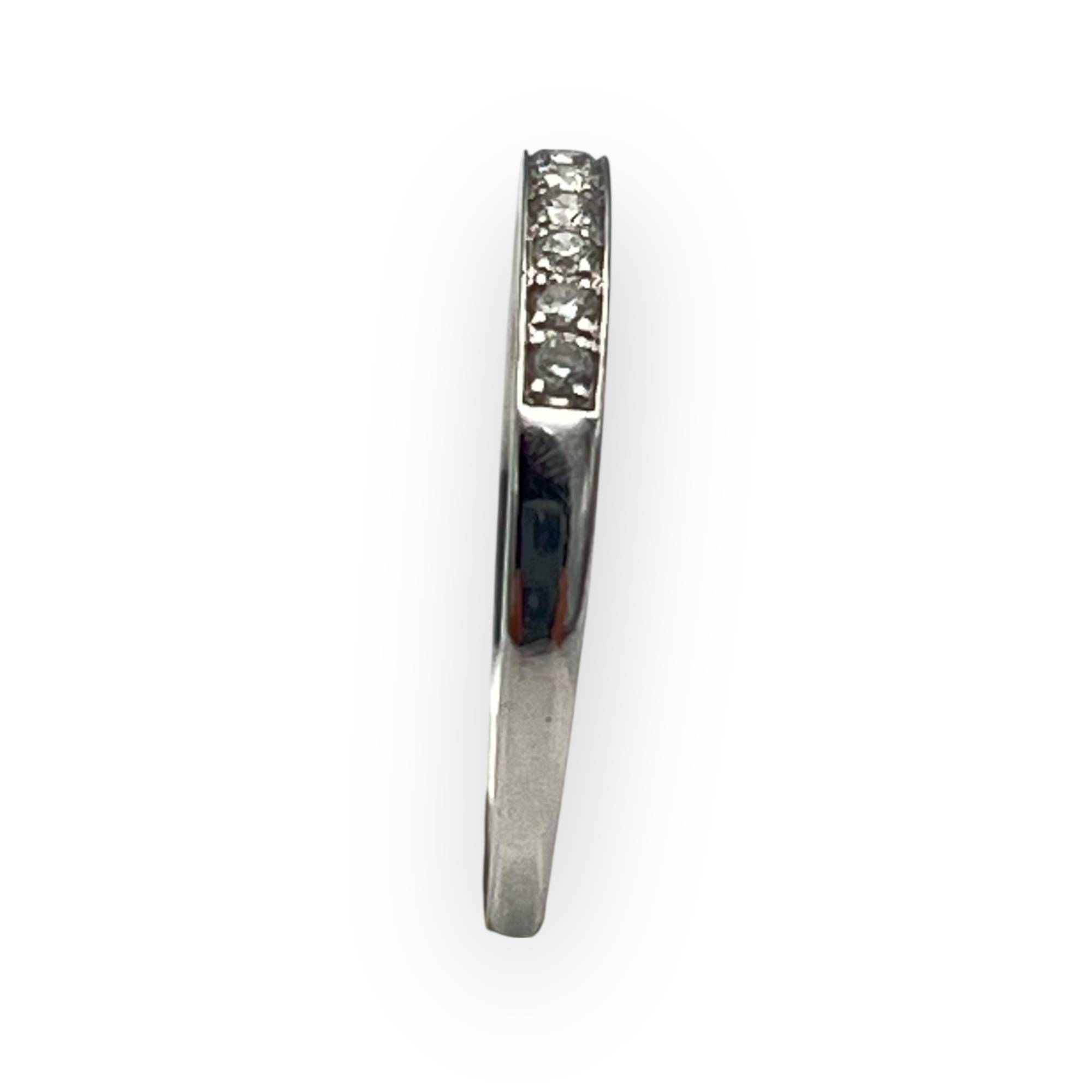 Une ravissante bague alliance en or blanc 750/1000 - 18 carats, sertie de 13 diamants en rail. Rhodiage neuf.