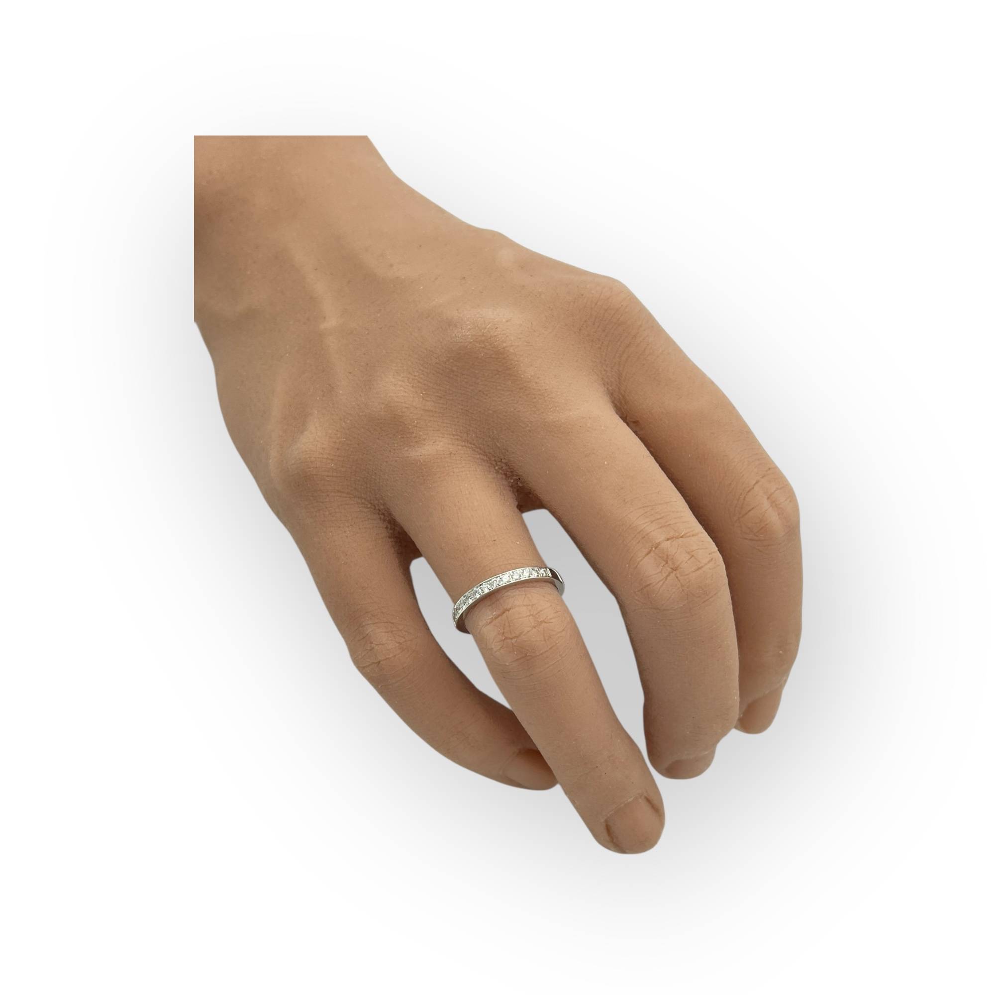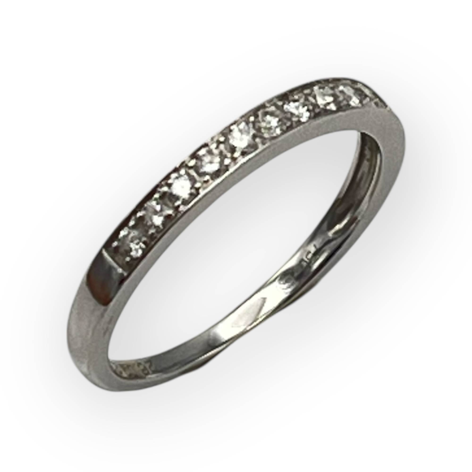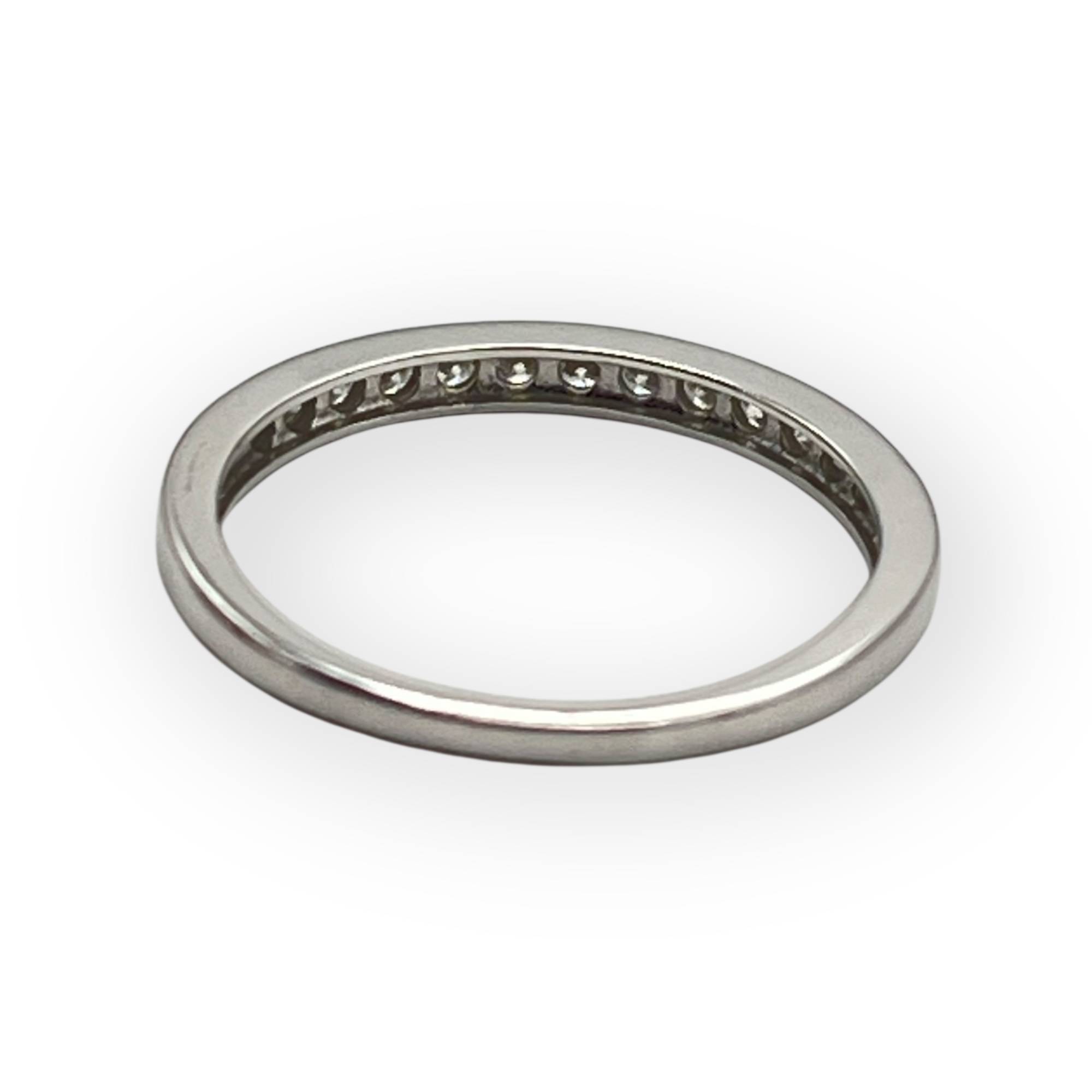 Une ravissante bague alliance en or blanc 750/1000 - 18 carats, sertie de 13 diamants en rail. Rhodiage neuf.
