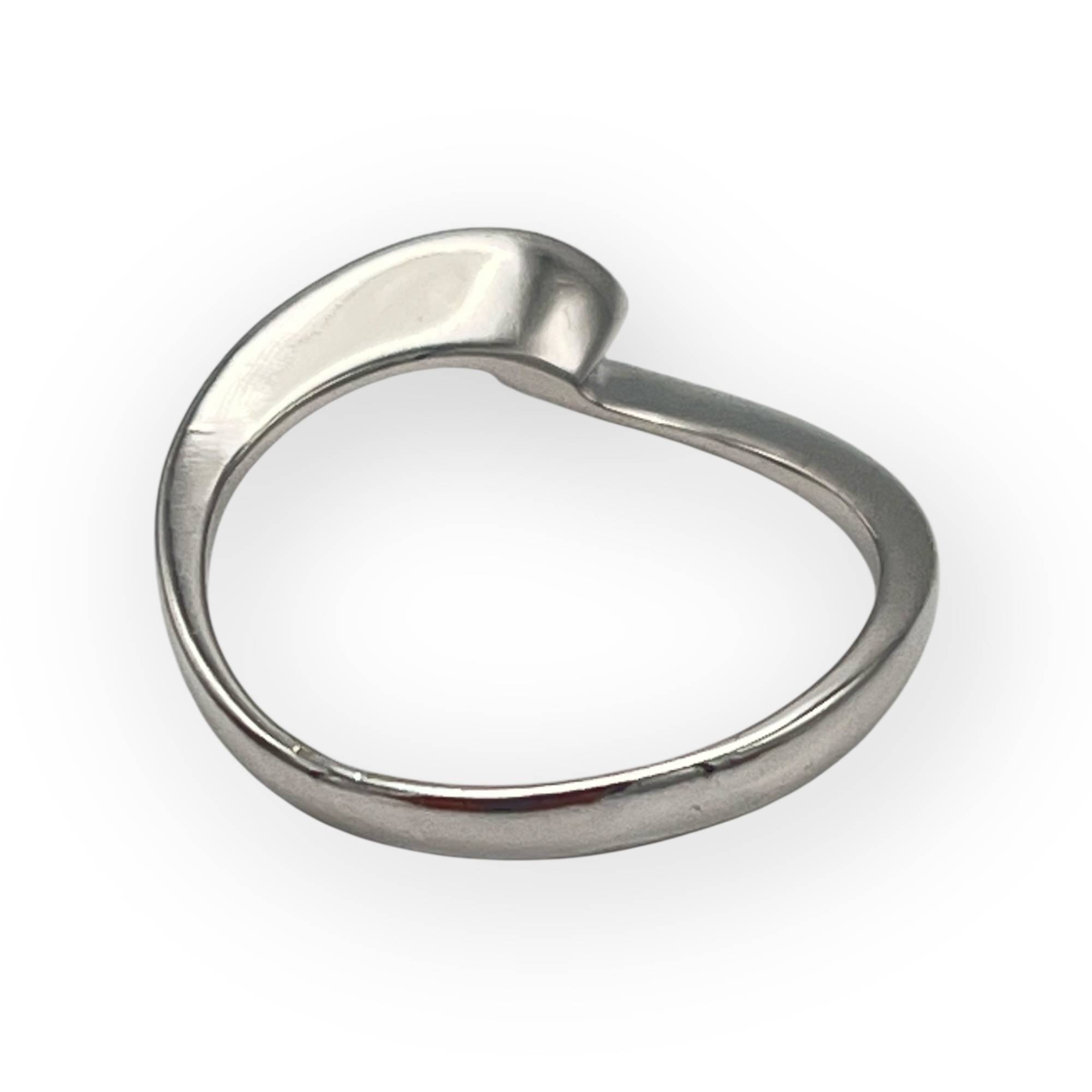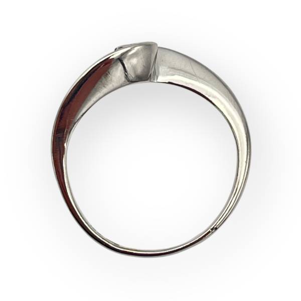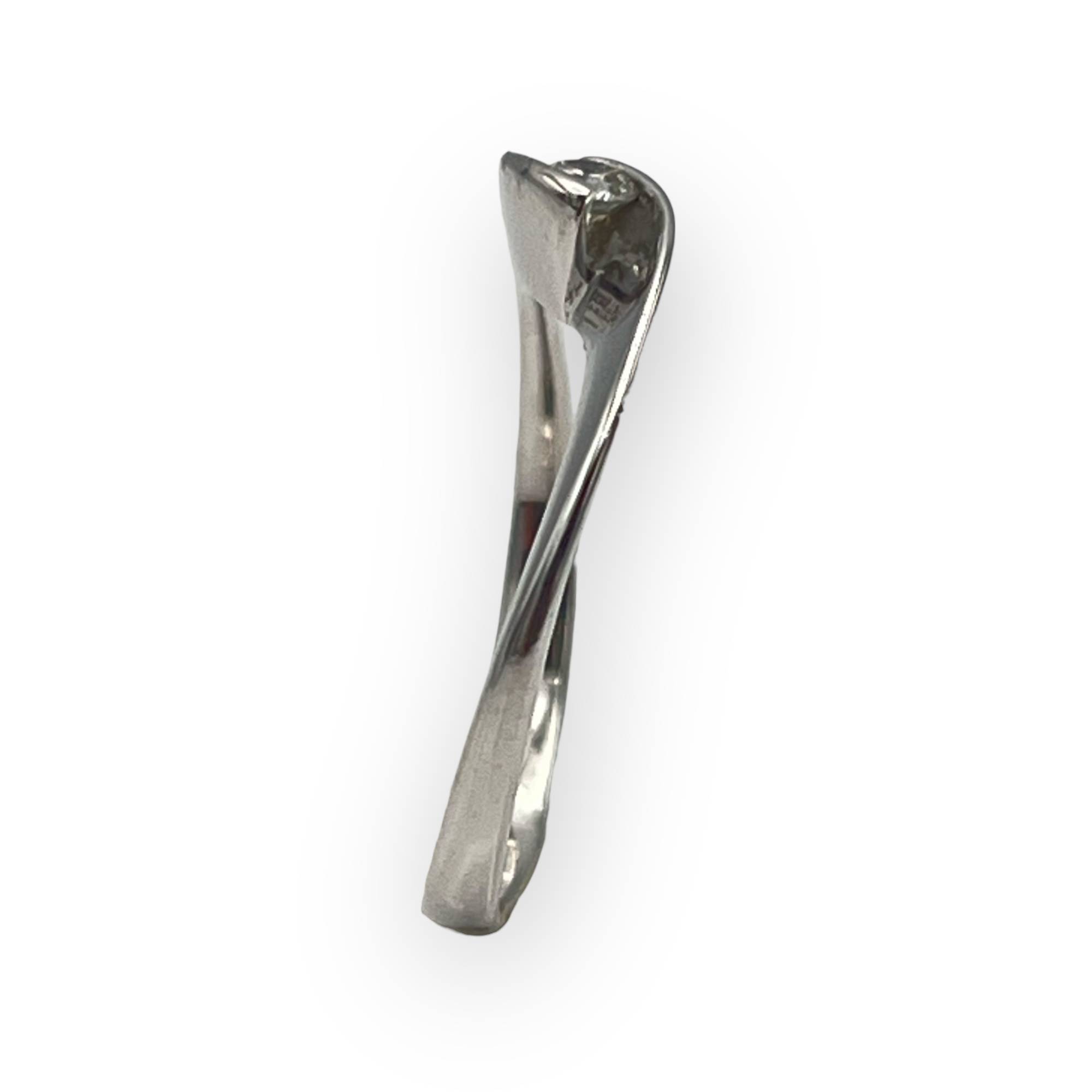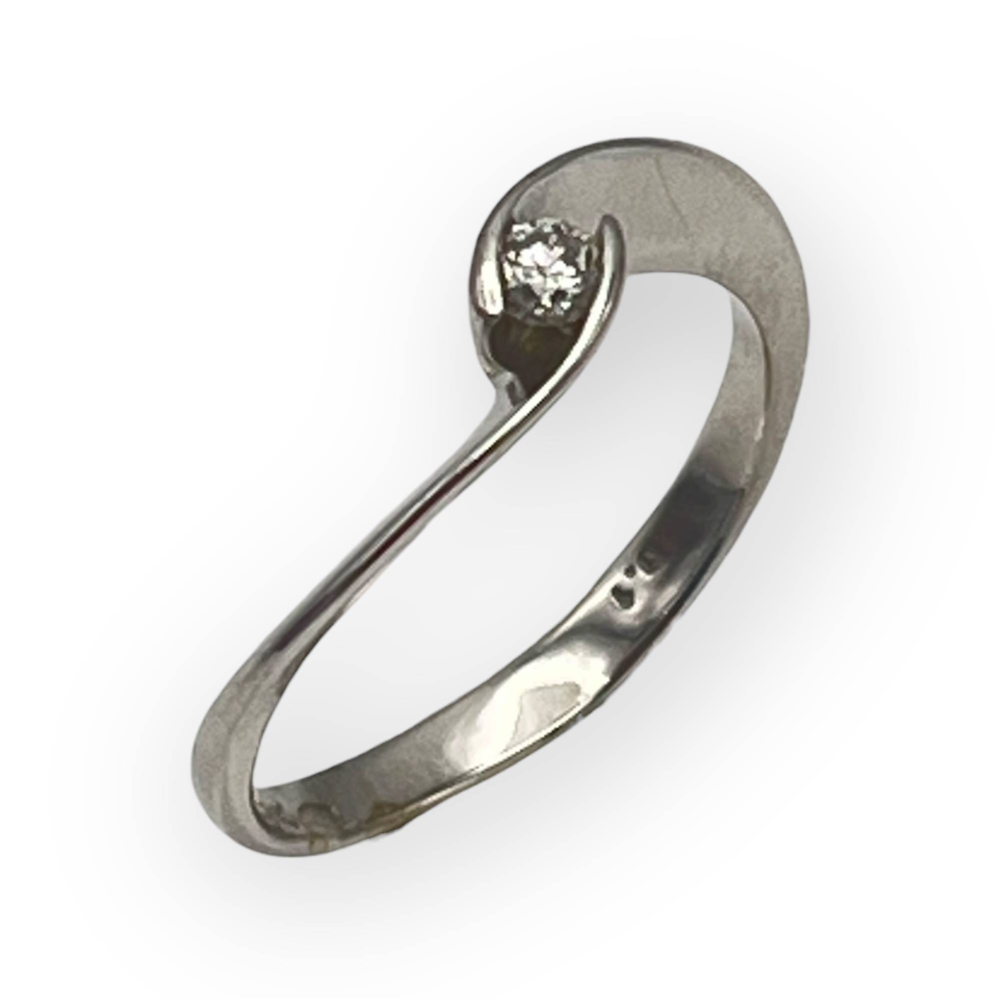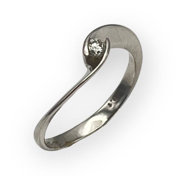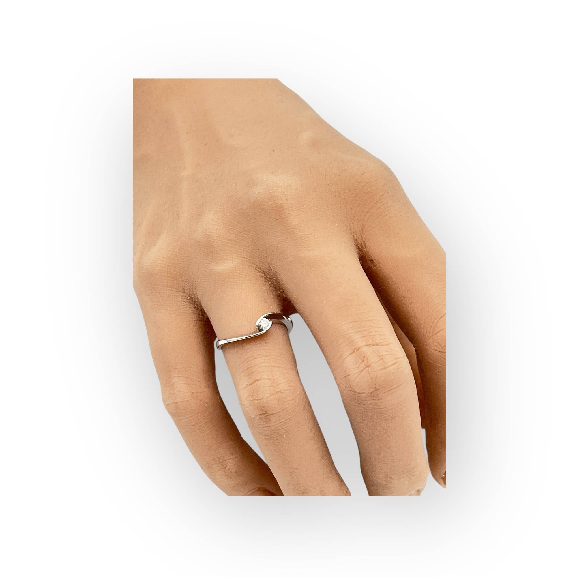 Une charmante bague ondulée en or blanc 750/1000 - 18 carats et sertie d'un diamant solitaire de 0.15 ct. Rhodiage refait à neuf.