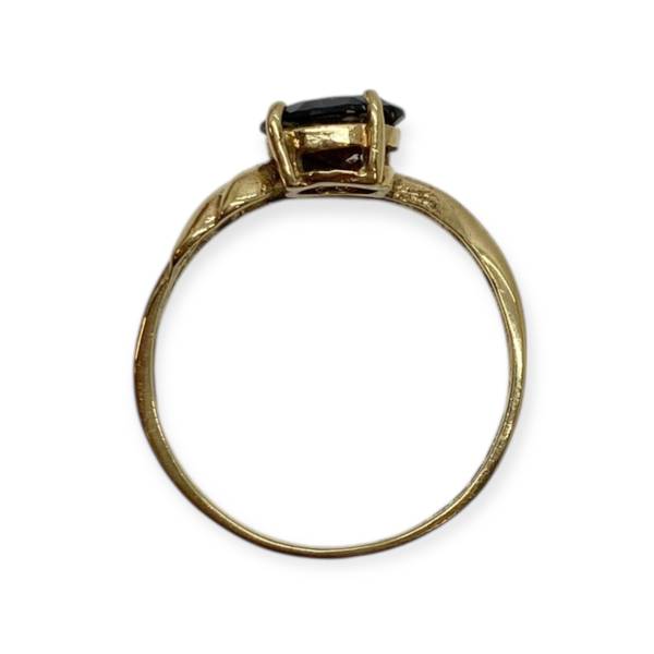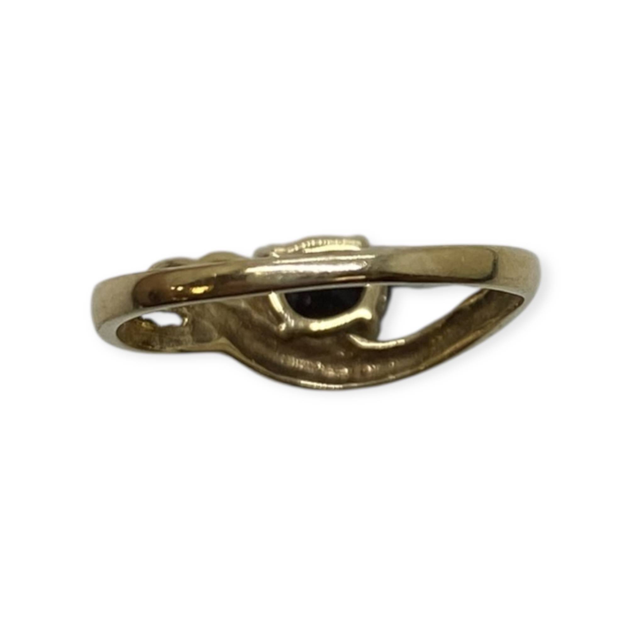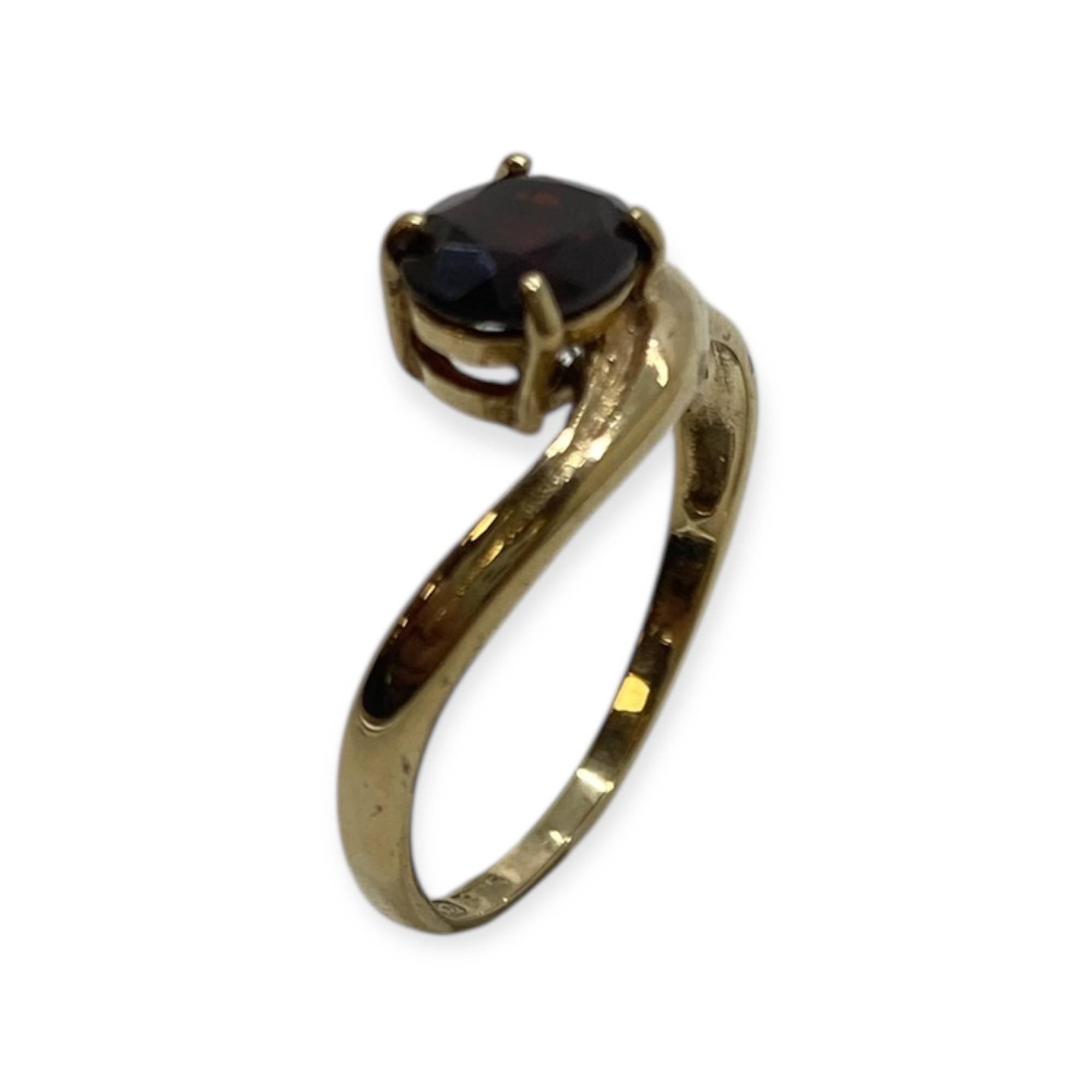 Jolie bague en or 375/1000 (9k) avec un grenat ovale souligné par une double virgule d'or.