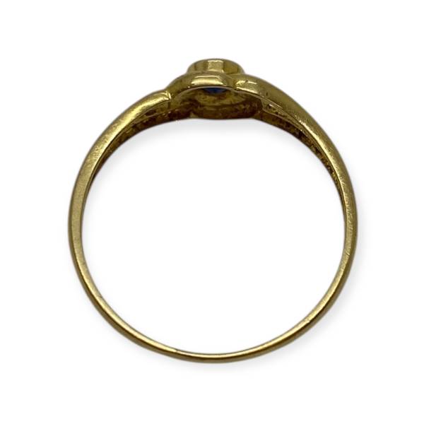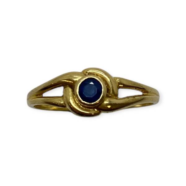 Jolie bague avec un saphir serti dans un petit tourbillon d'or. Fabriquée en or 750/1000 (18k)