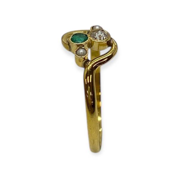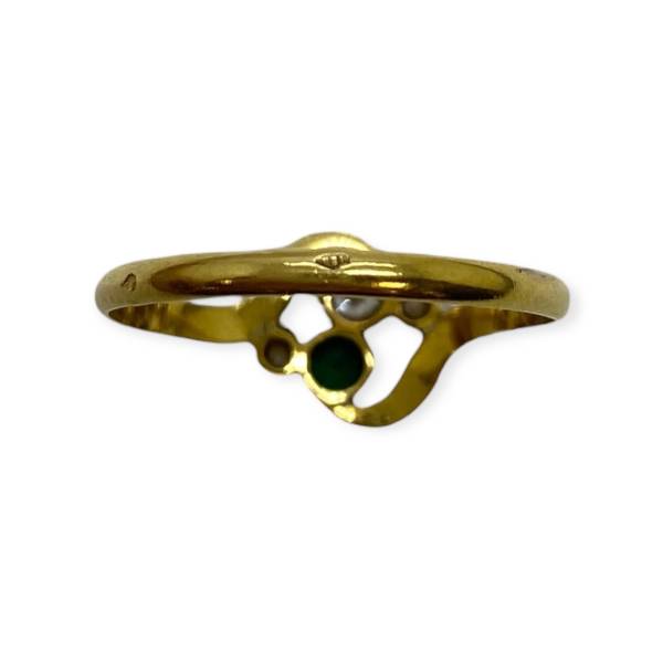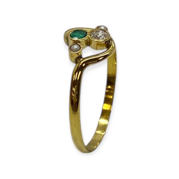 Bague émeraude, diamant et perles en or 750/1000 (18k) de fabrication française.