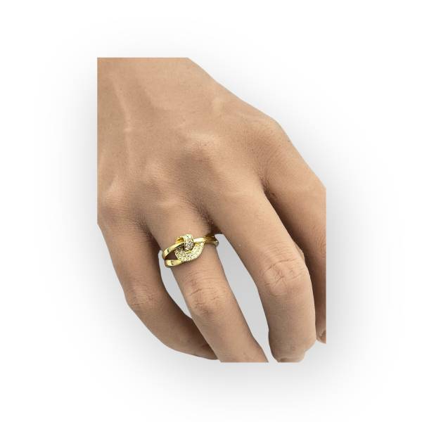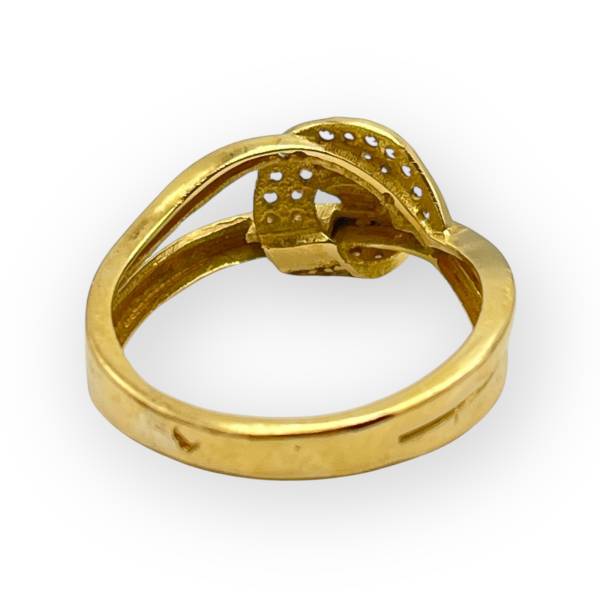 Bague en or 750/1000 au design entrelacé, sublimée d’oxydes de zirconium scintillants, idéale pour un style élégant au quotidien.