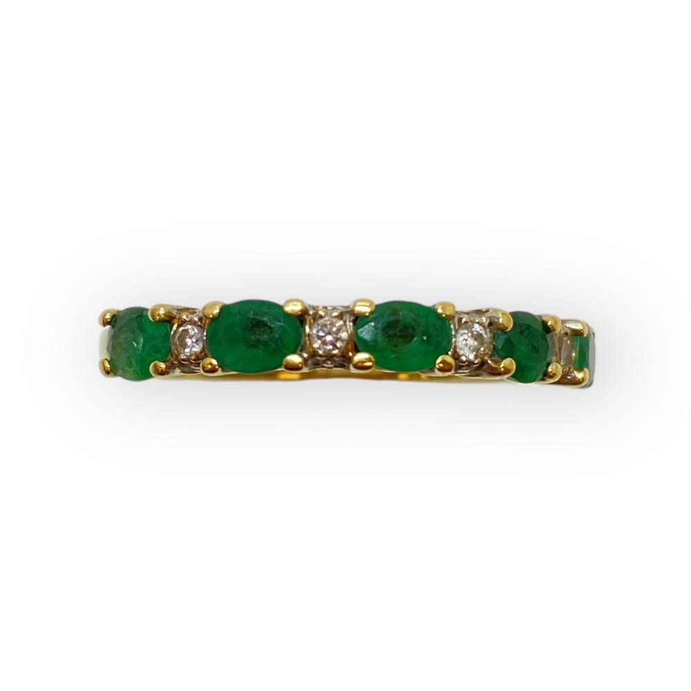Belle bague en or 750/1000 (18K) avec des diamants et des émeraudes