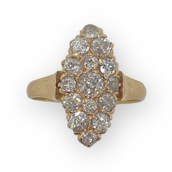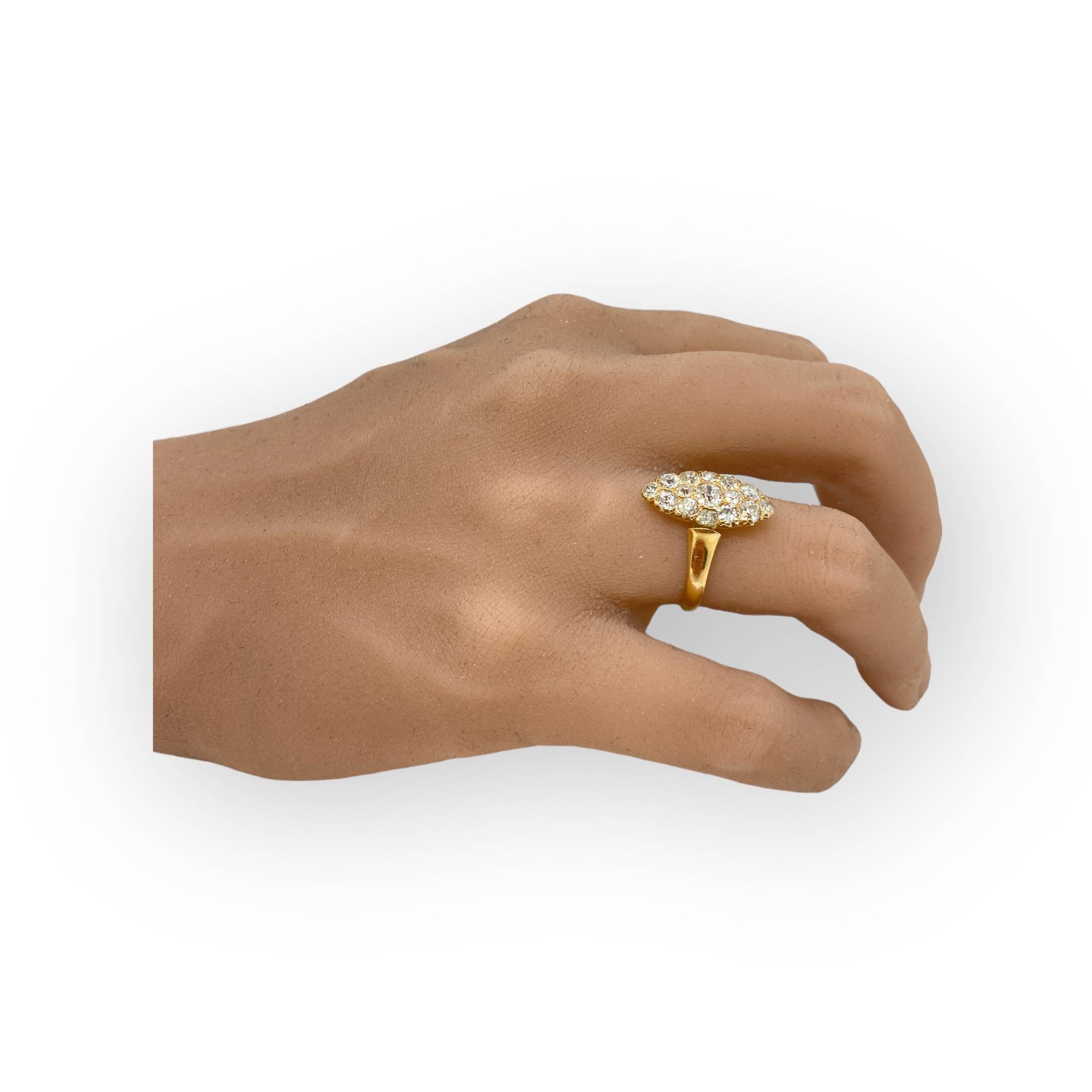 Craquez pour le charme de l'ancien avec cette superbe bague Marquise en or 750/1000 (18k) et ses diamants tailles anciennes .