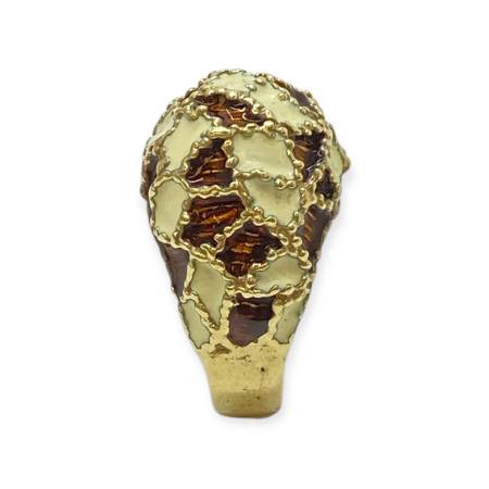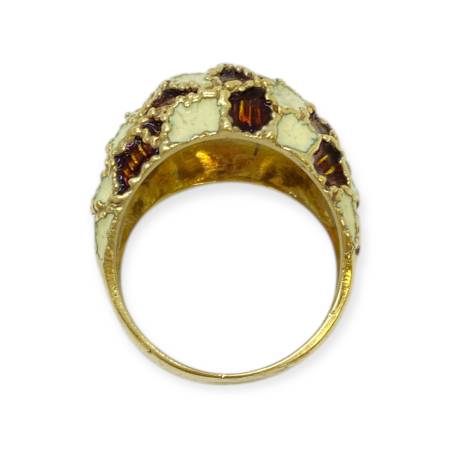 Bague Vintage Or 585 – Émail Crème et Brun Effet Mosaïque