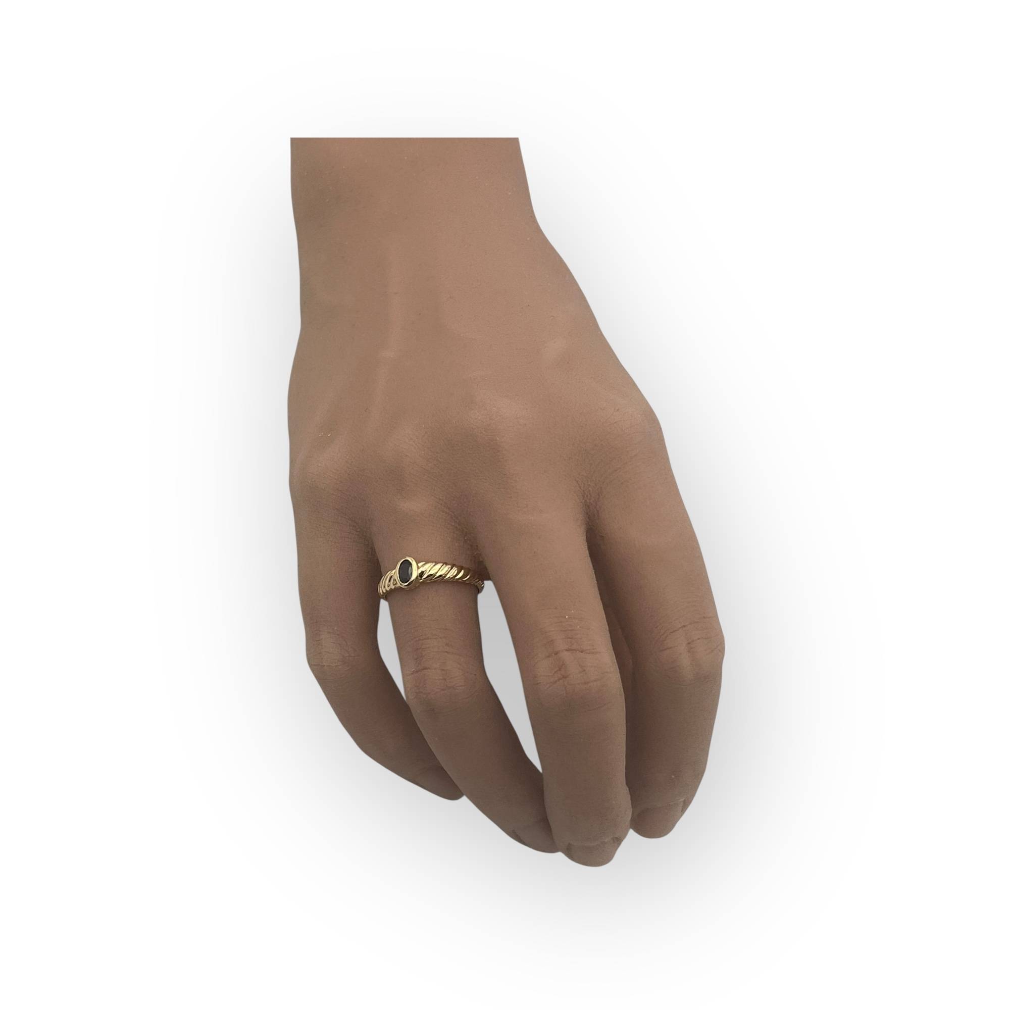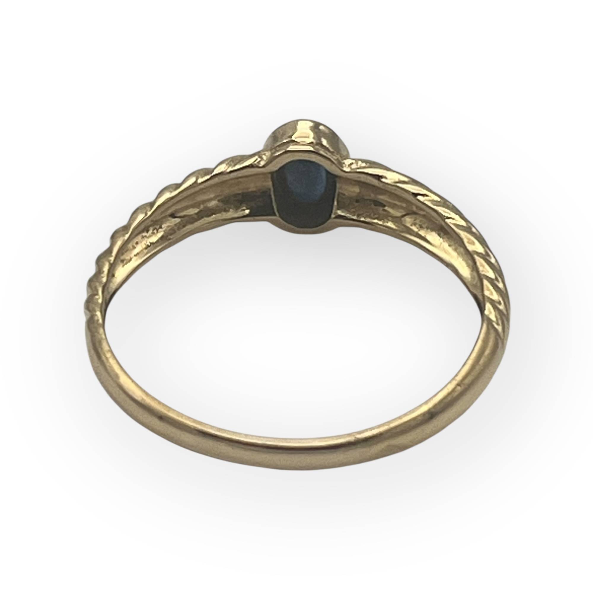 Un saphir ovale monté sur un anneau strié en or jaune : l'élégance toute en finesse !