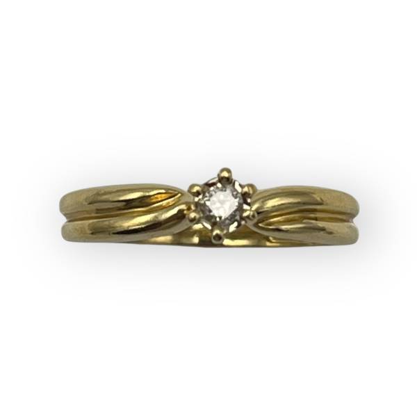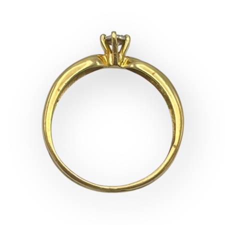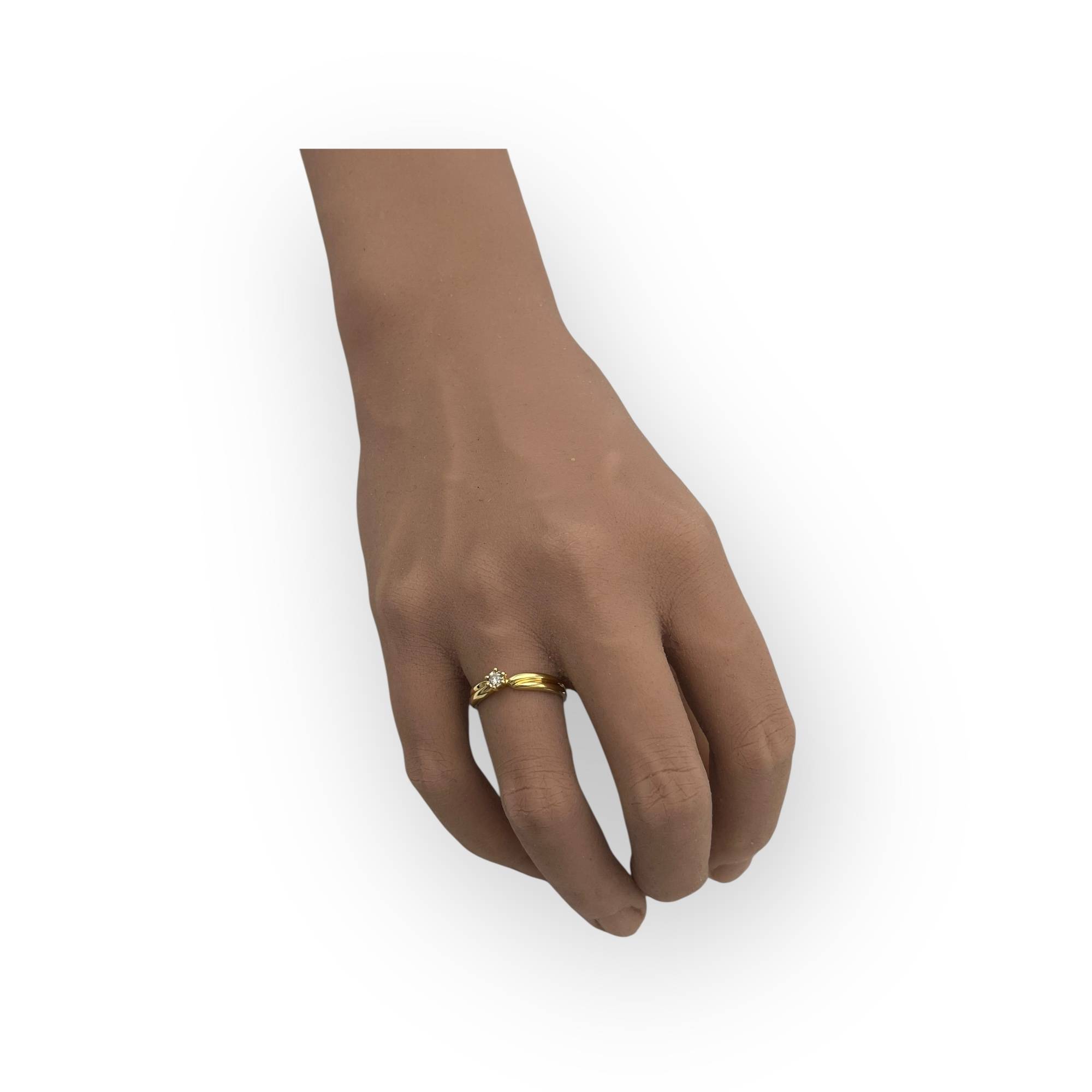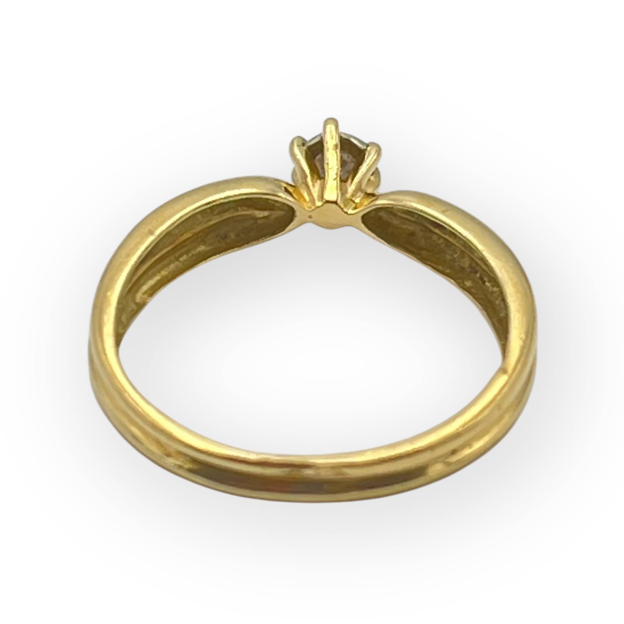 Cette jolie bague en or 750/1000 est sertie d'un diamant solitaire de 0.4 ct . Fabrication française.