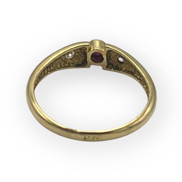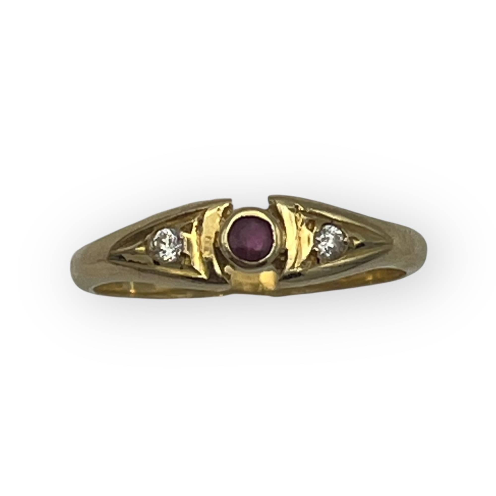 Voici une fine bague tout en délicatesse sertie en son centre d'un rubis avec une découpe originale autour de la pierre.