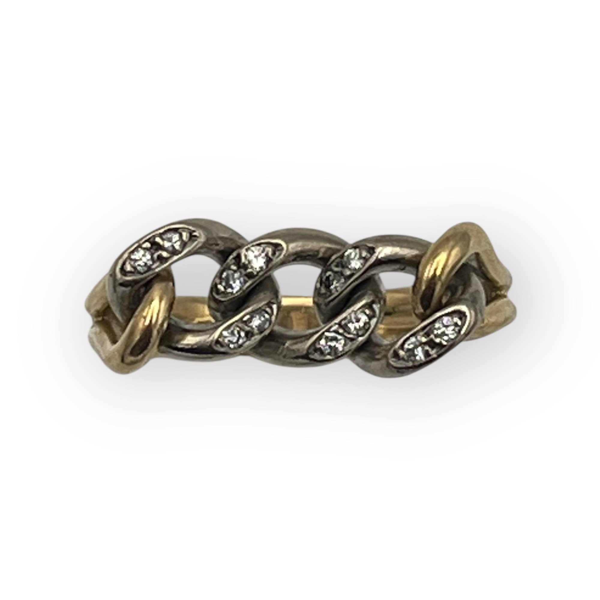 Bague chaîne deux ors 750 et diamants