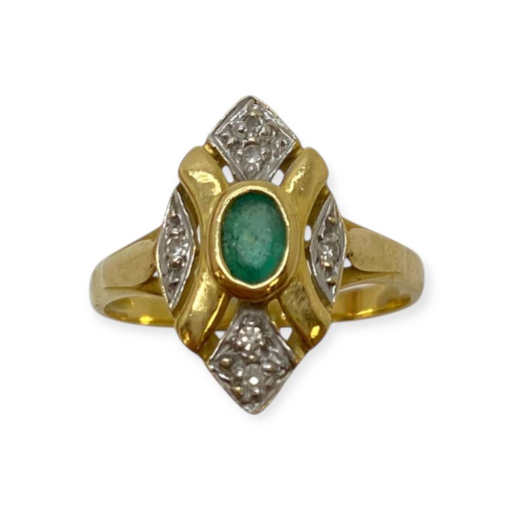 Bague ancienne en or 750 émeraude et diamants