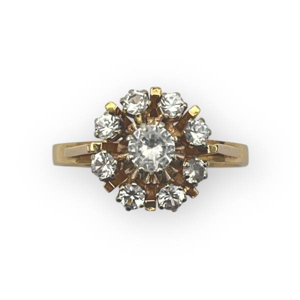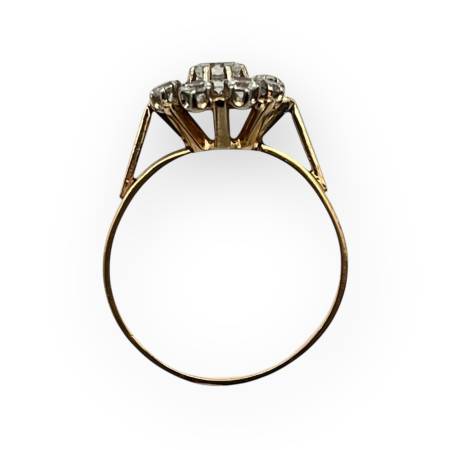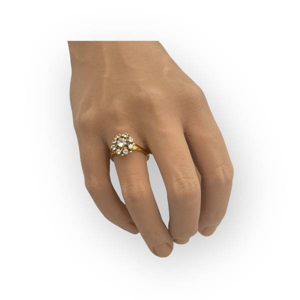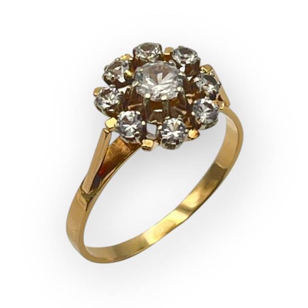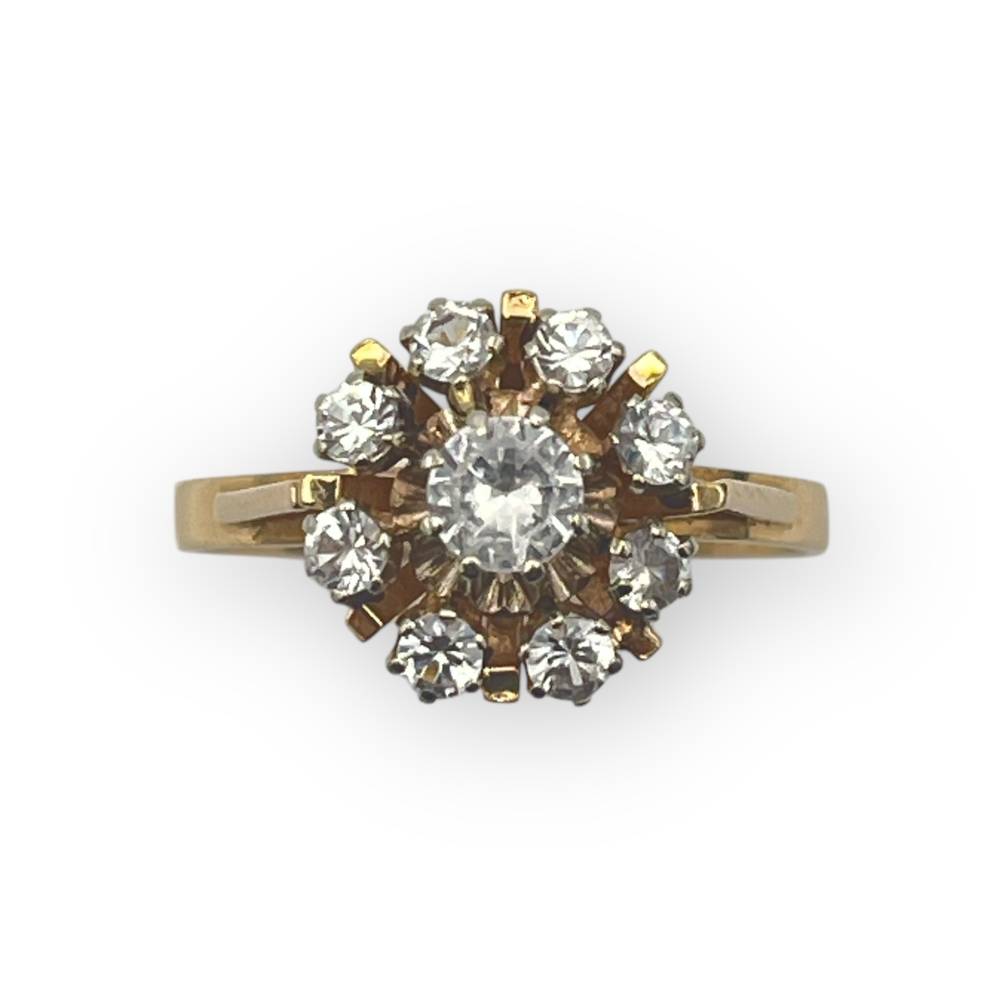 Bague en or 750/1000, oxydes de zirconium en composition florale, éclat lumineux et esprit classique revisité.