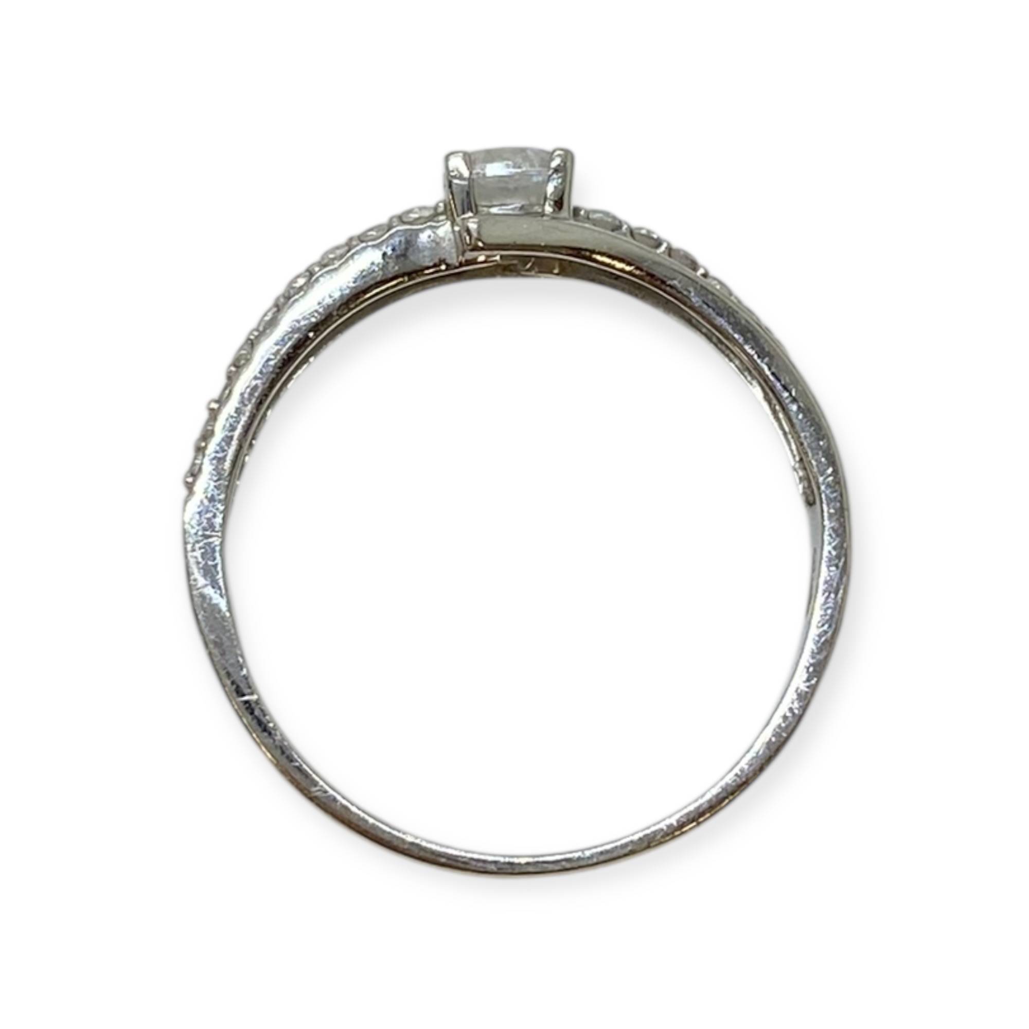 Bague solitaire croisée en or blanc 750 et oxydes de zirconium
