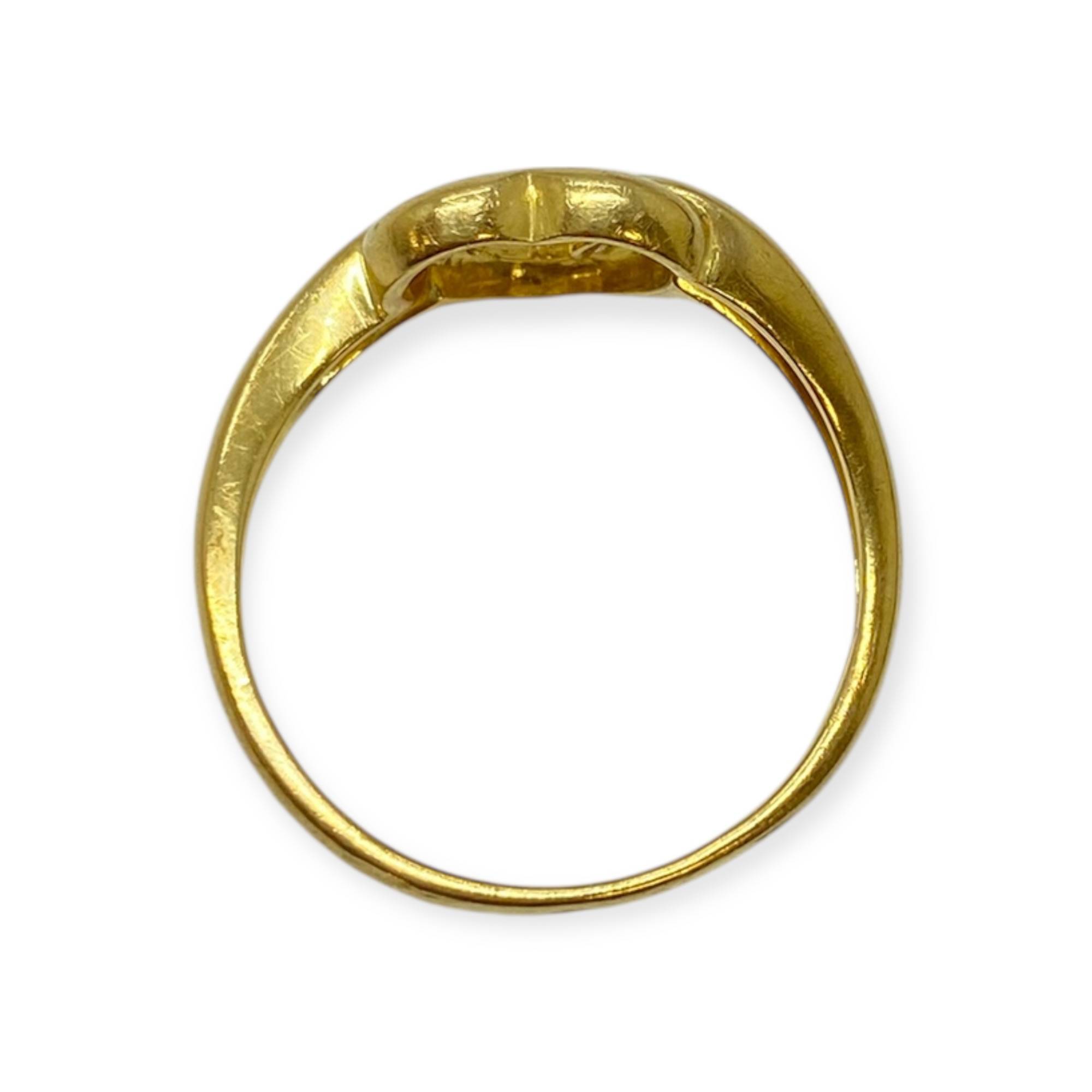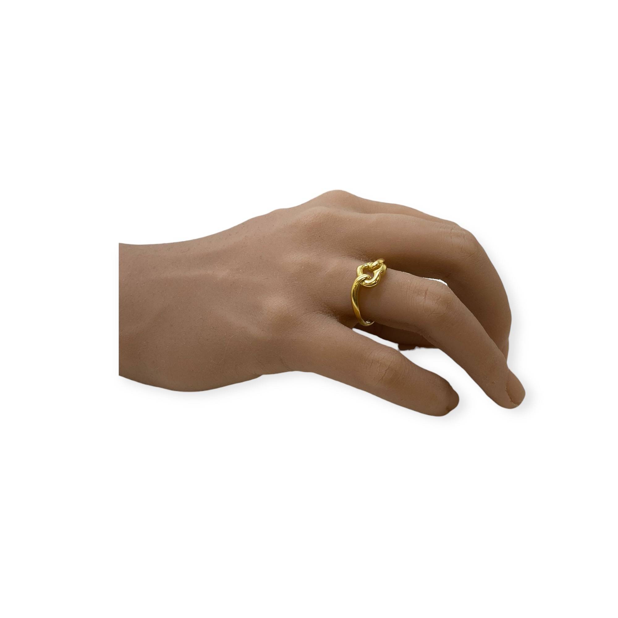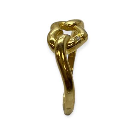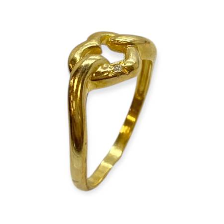 Bague en or jaune 750, motif cœur entrelacé serti d’un diamant. Un bijou symbolique, élégant et intemporel