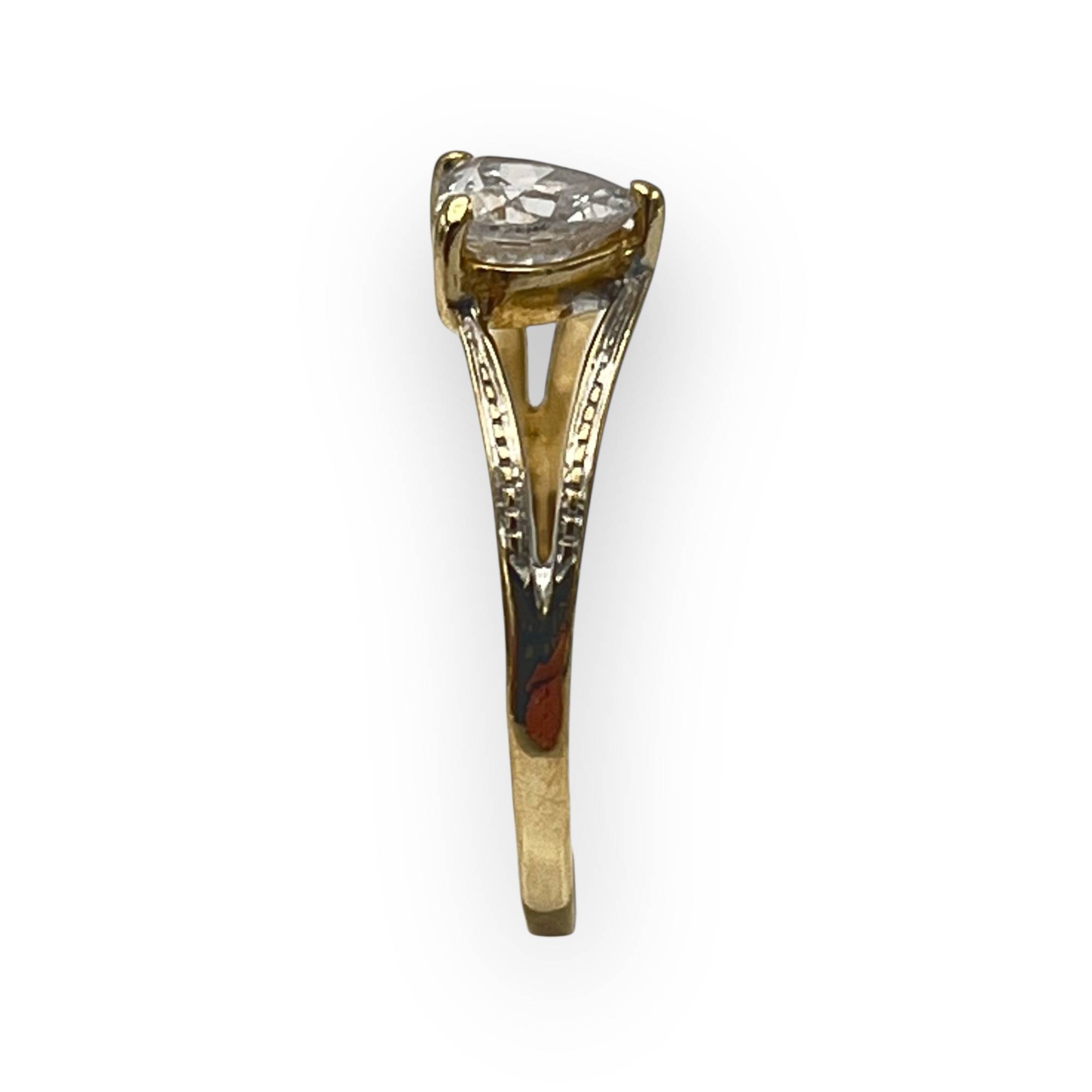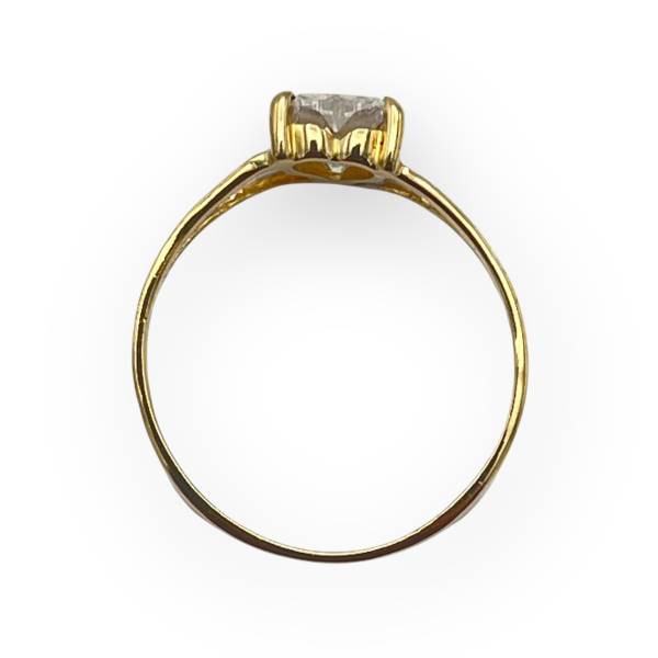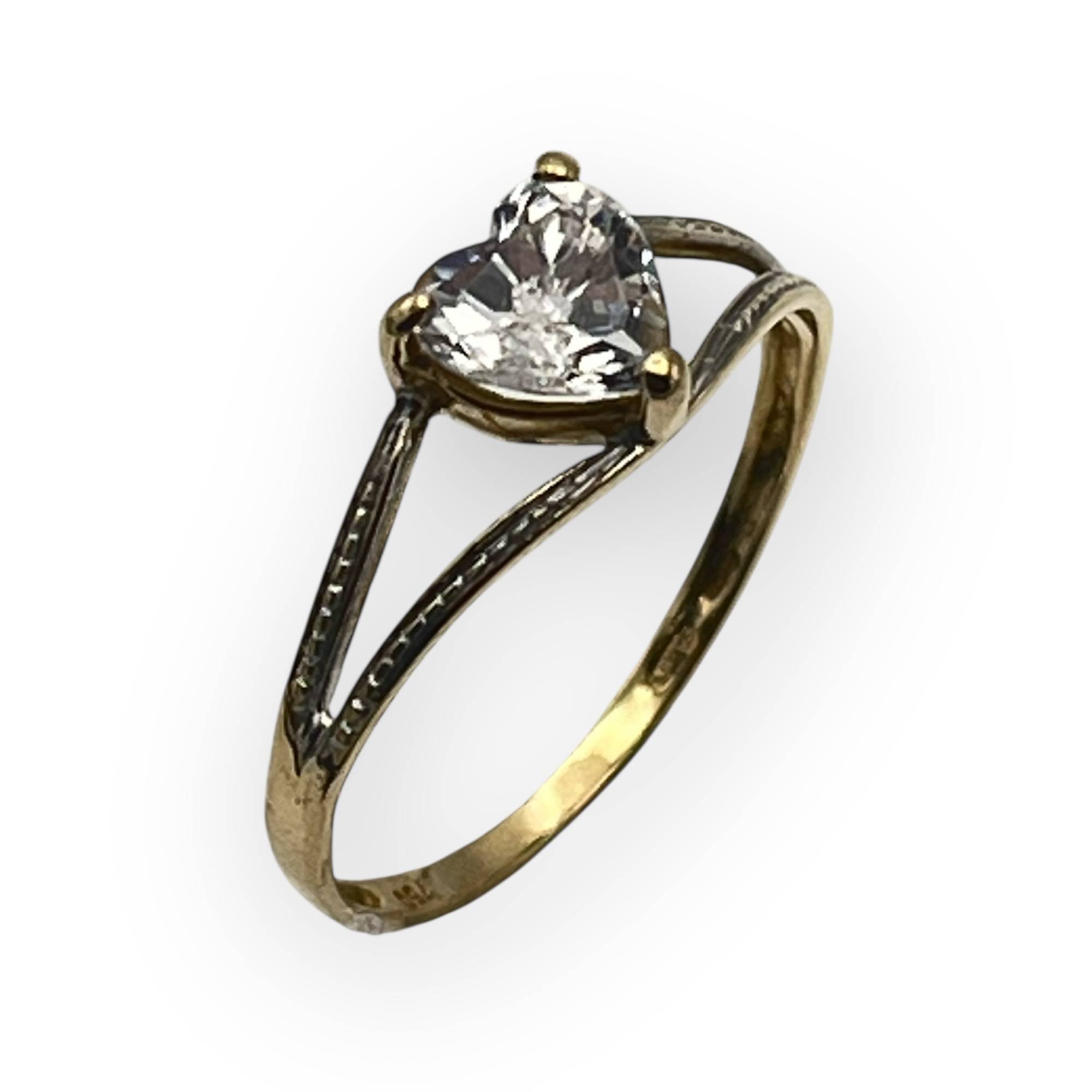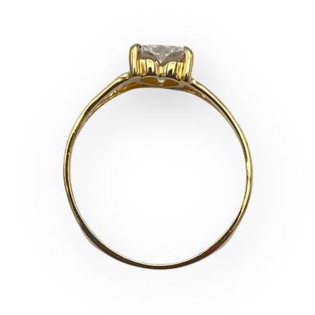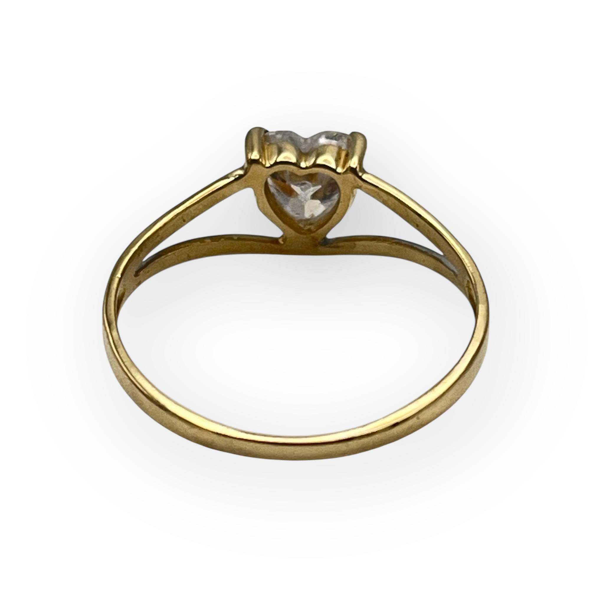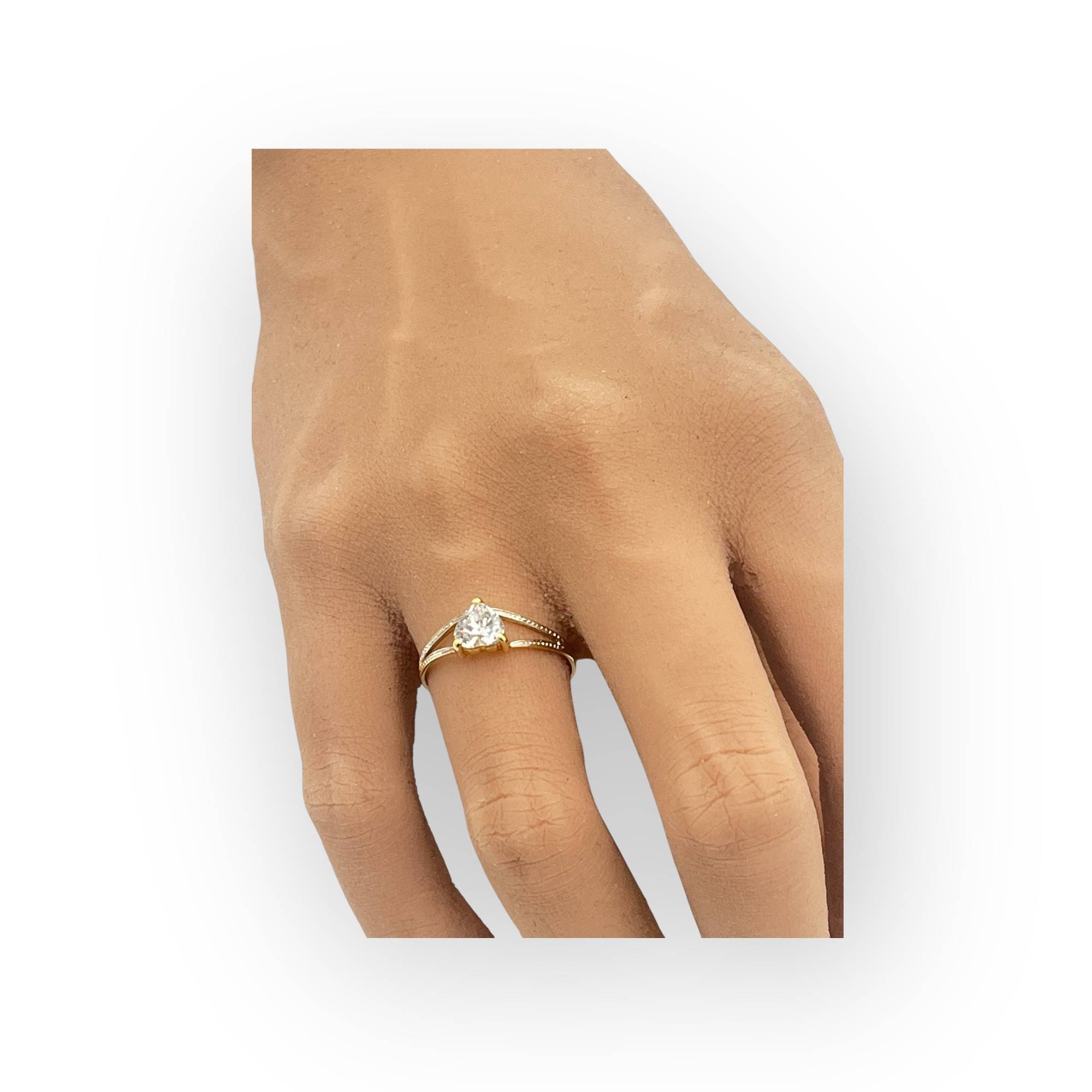 Bague en or 750/1000 avec oxyde de zirconium taille cœur, anneau à structure angulaire et délicate.