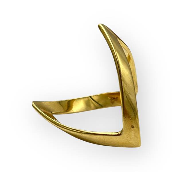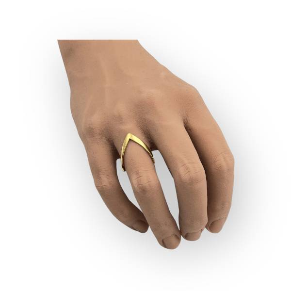 Bague chevron ouverte en or 750/1000 au design épuré. Sa forme en V élancée habille le doigt avec une ligne graphique moderne et légère.