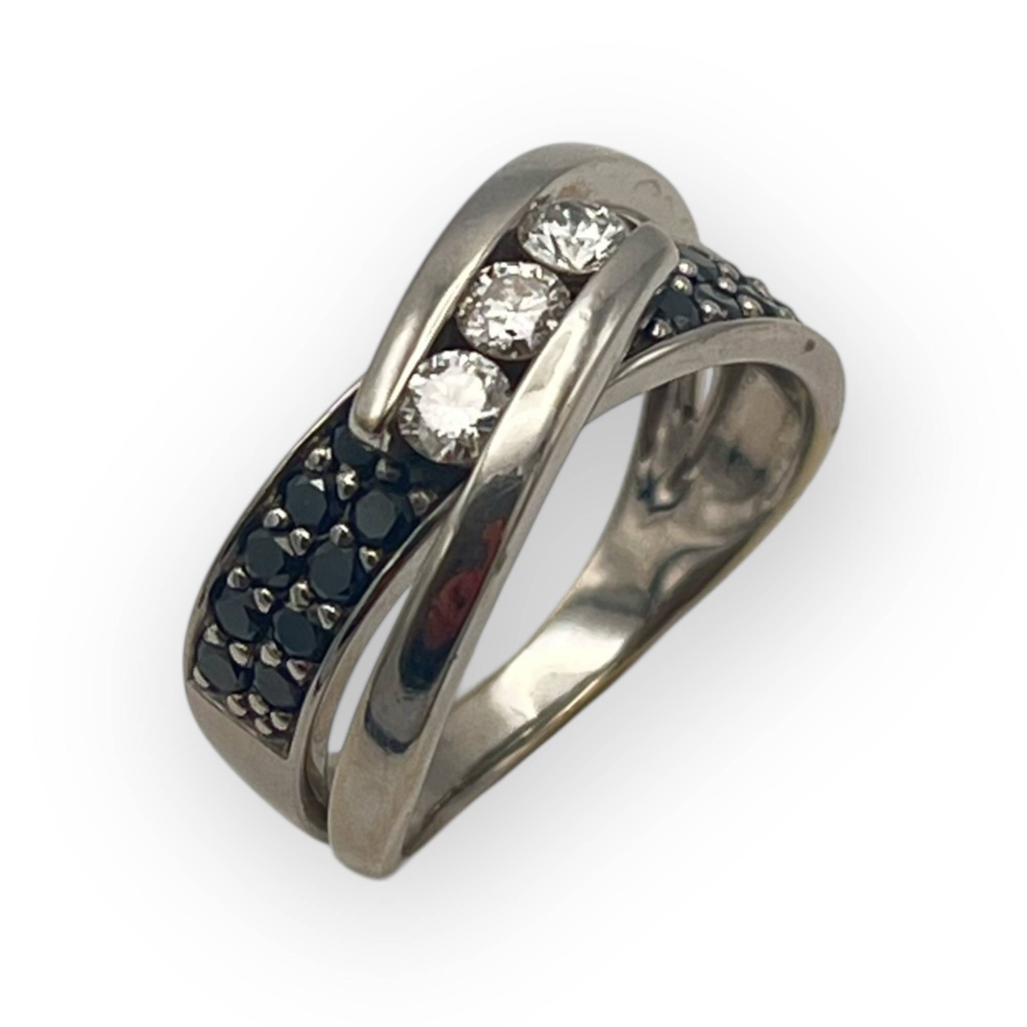 Bague or blanc 750 diamants blancs et noirs