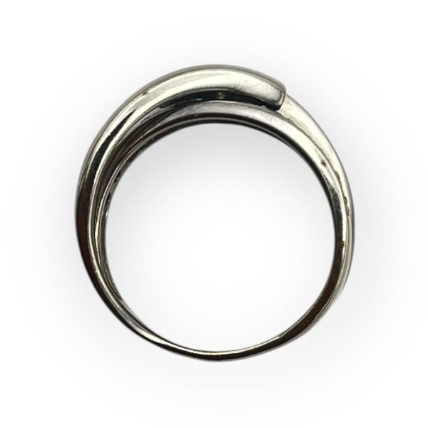 Bague en or 750 (or blanc) au design croisé, formée de deux brins entrelacés.