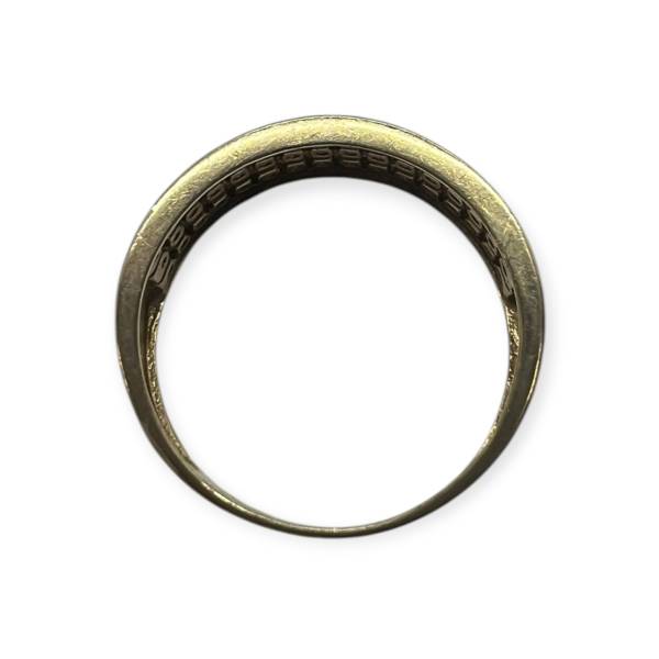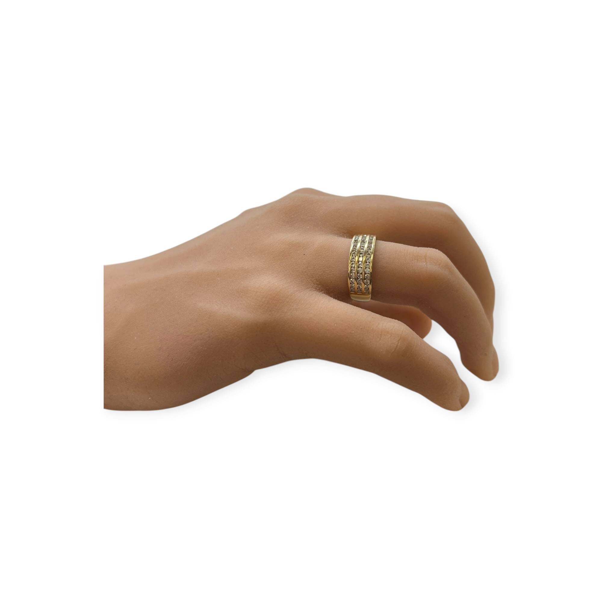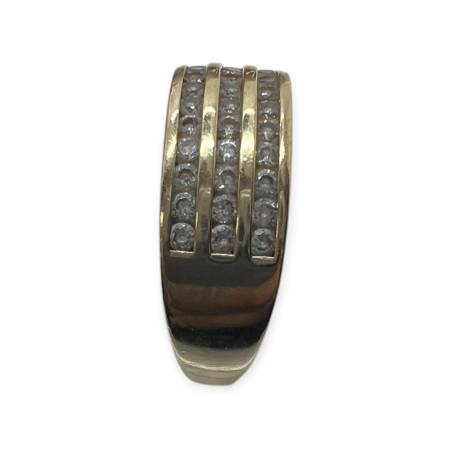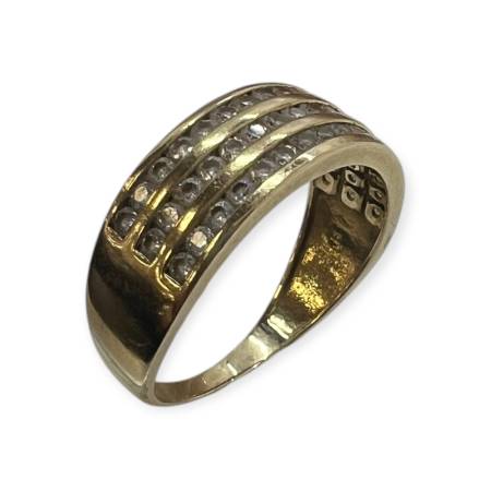 Bague élégante en or 375/1000 (9k) ornée de plusieurs rangées d’oxydes de zirconium. Son design structuré en lignes apporte un effet moderne et lumineux, idéal pour habiller la main avec raffinement. Les oxydes de zirconium, soigneusement alignés, offrent un bel éclat proche de celui du diamant tout en restant accessibles.