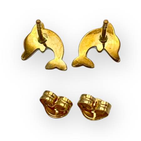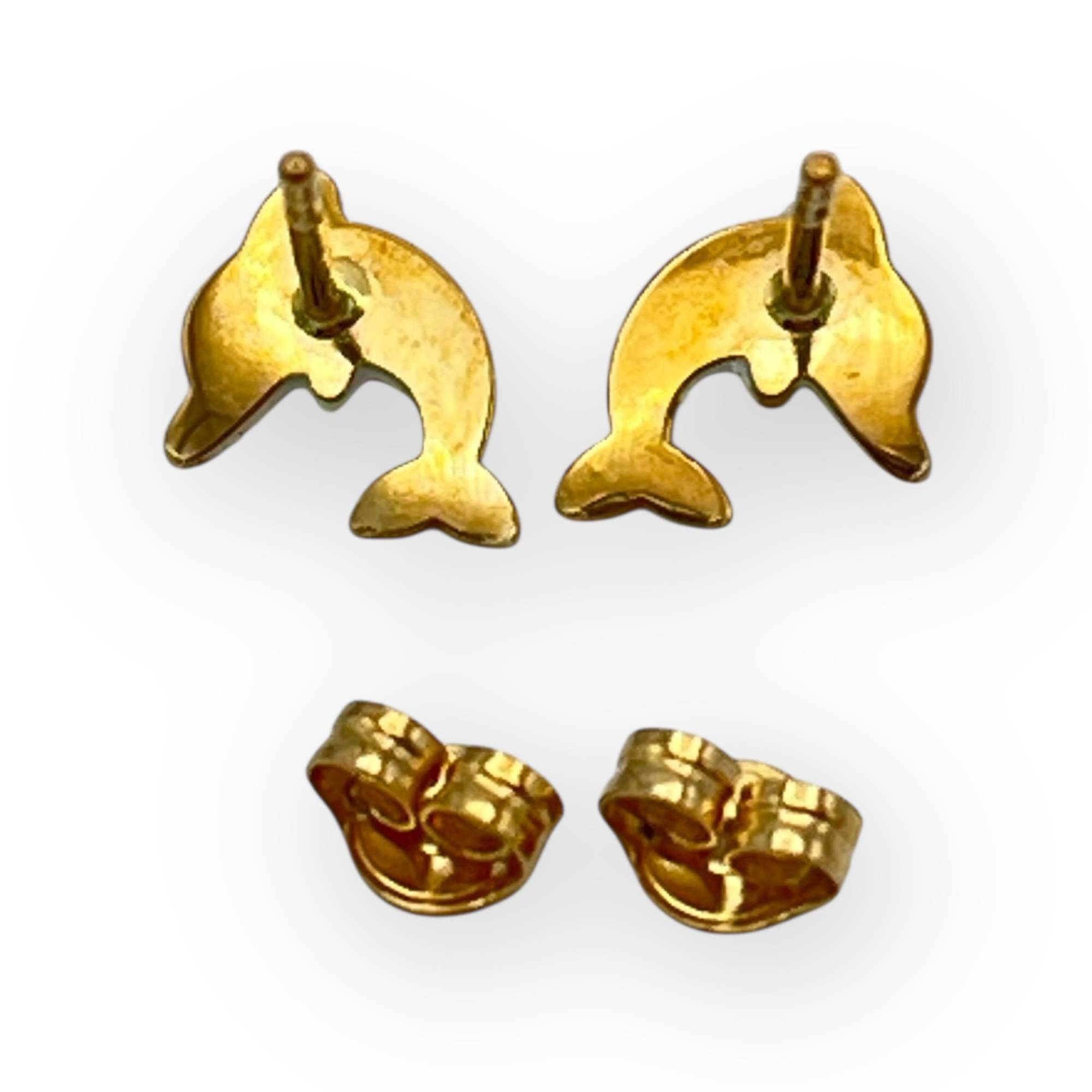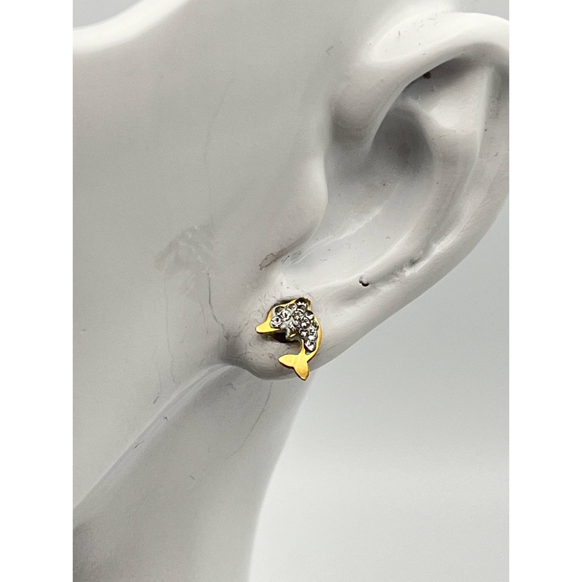 Boucles d'oreilles or 750 dauphins et oxydes de zirconium