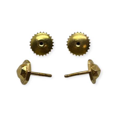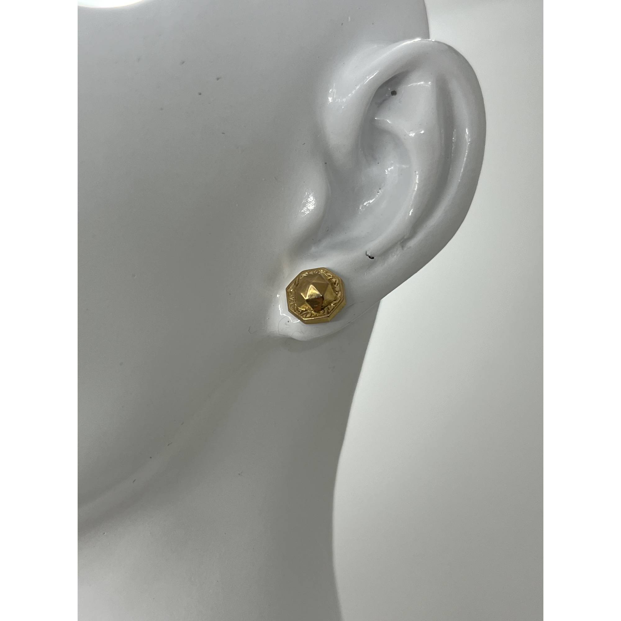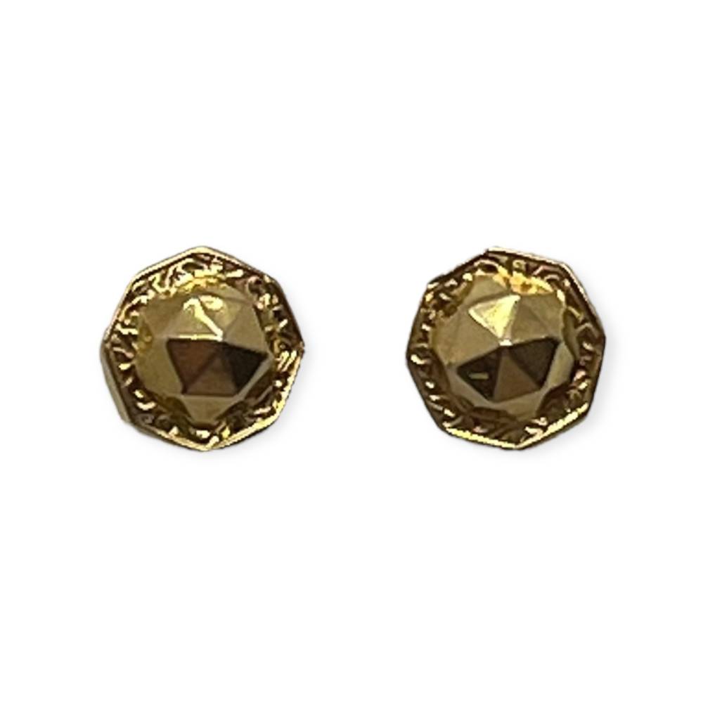 Ces boucles octogonales présentent de multiples facettes triangulaires qui leur donnent un éclat exceptionnel. Léger défaut sur une des facettes.