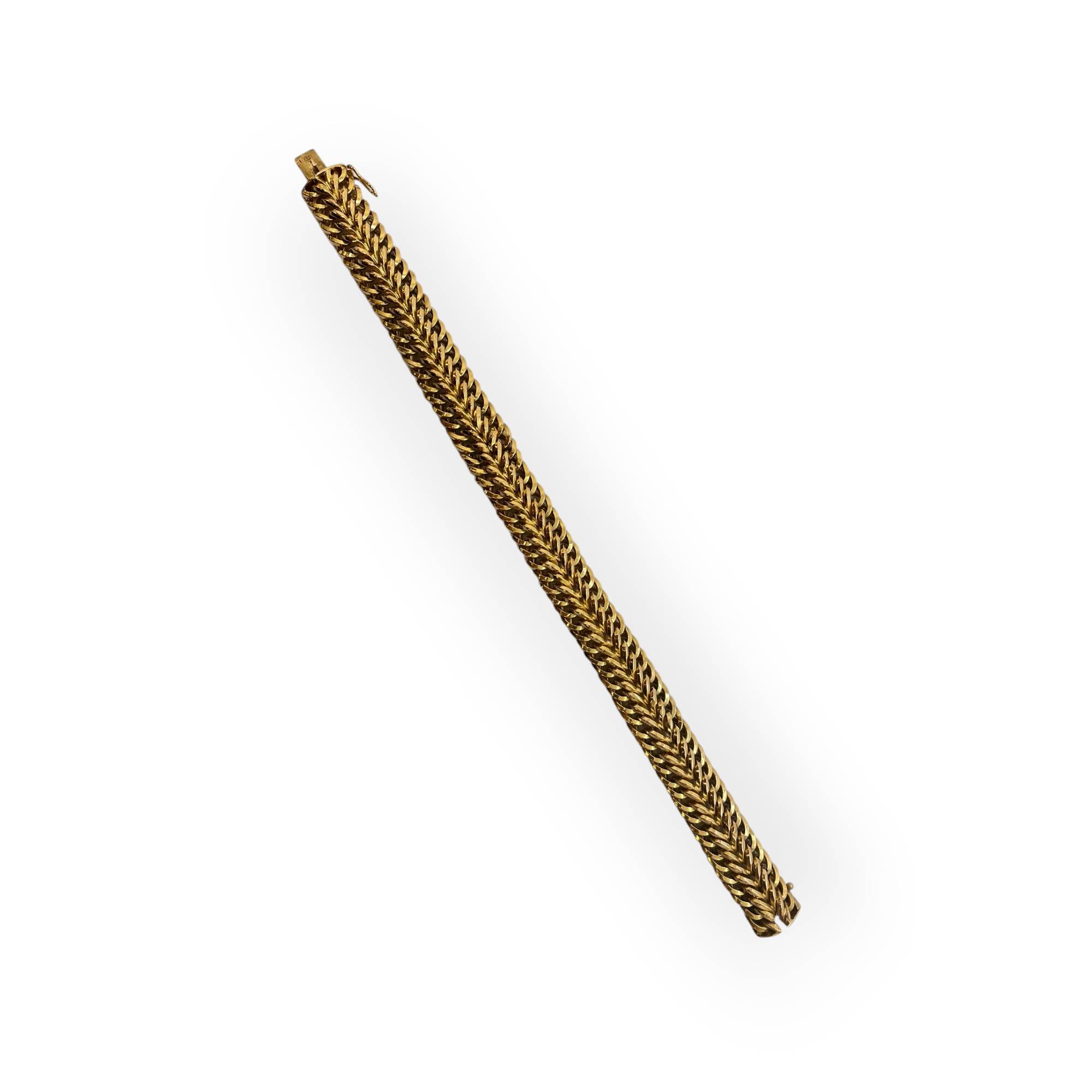 Quel magnifique bracelet en épi de fabrication française en or 750/1000. Quelques maillons manquent "d'articulation" mais cela n'est pas visible une fois porté.