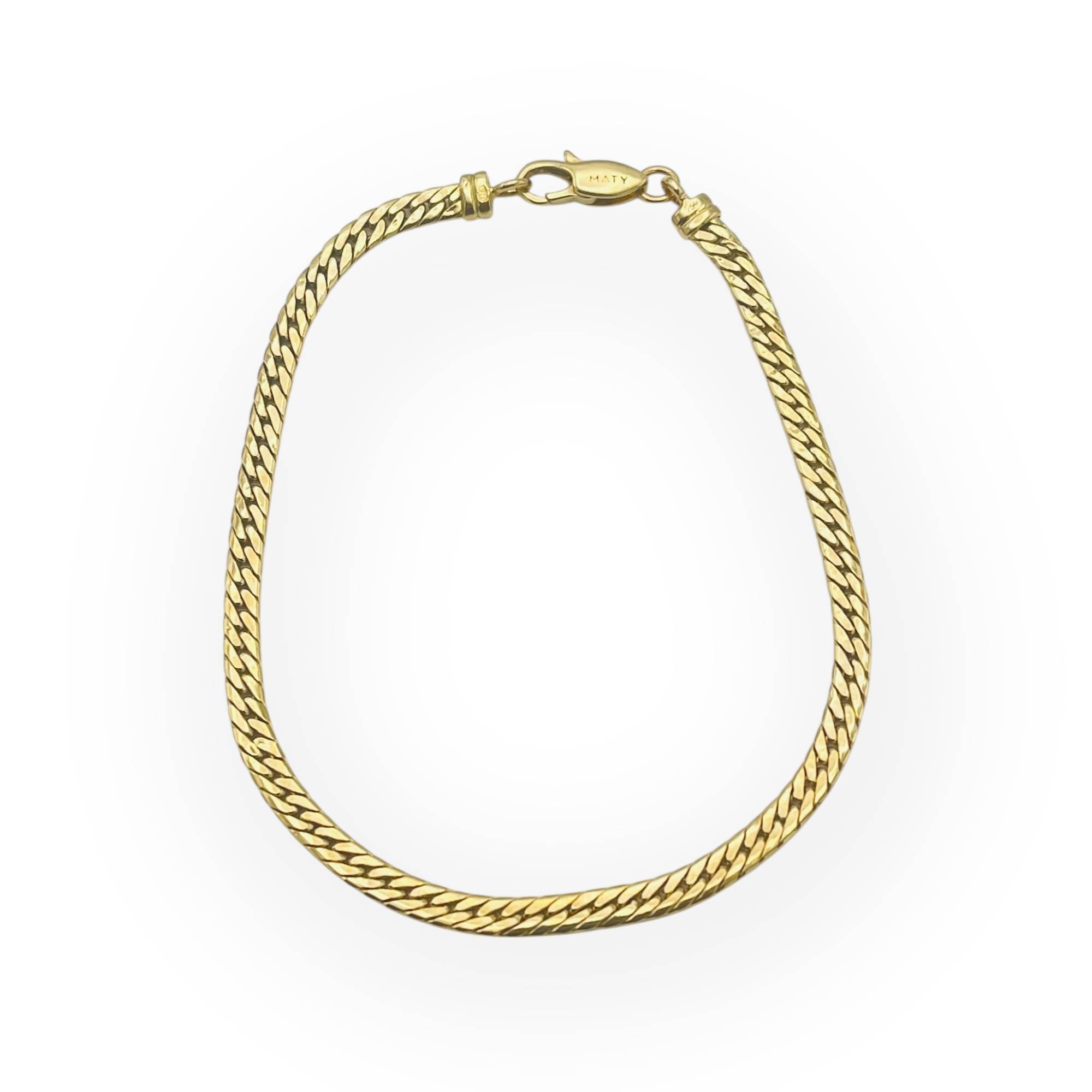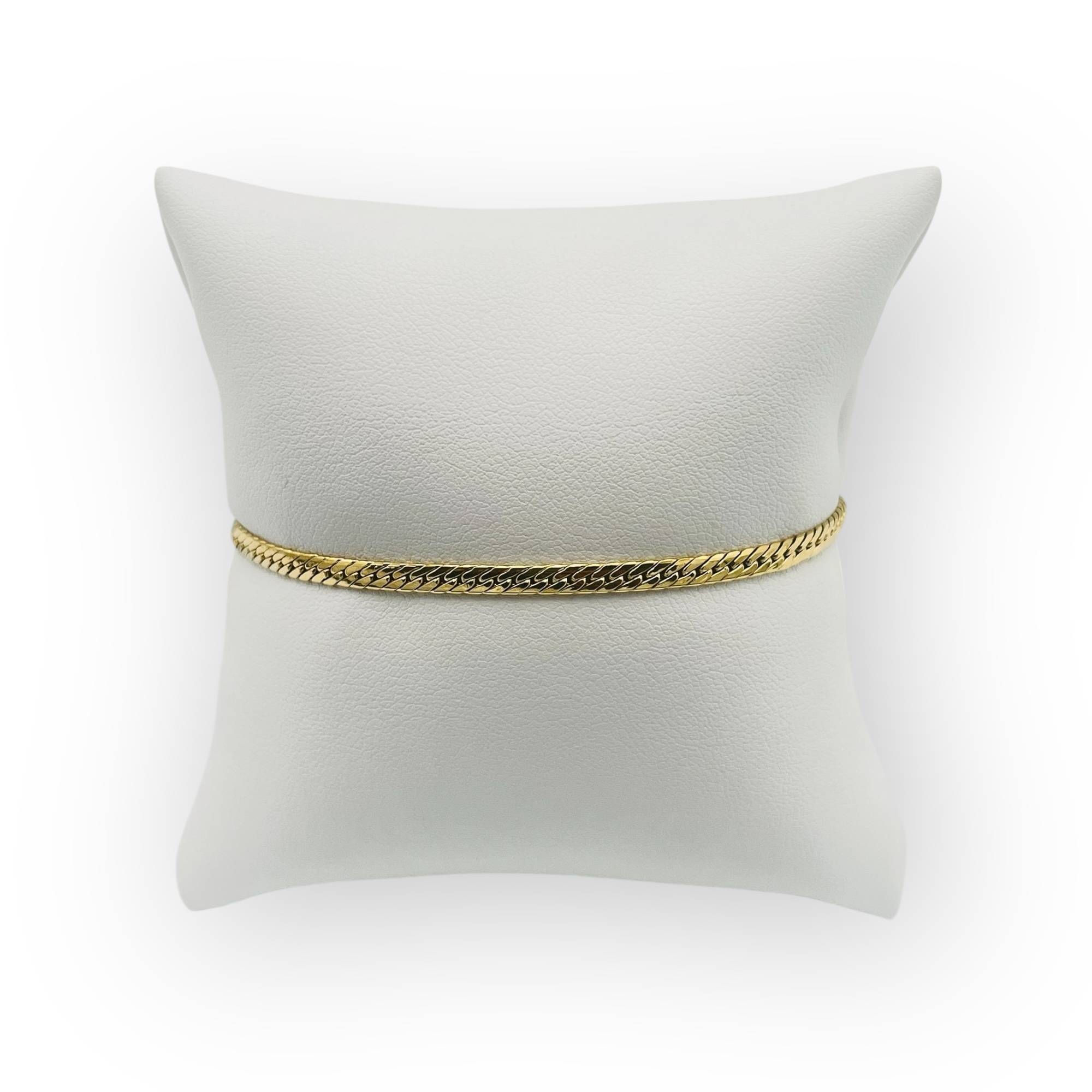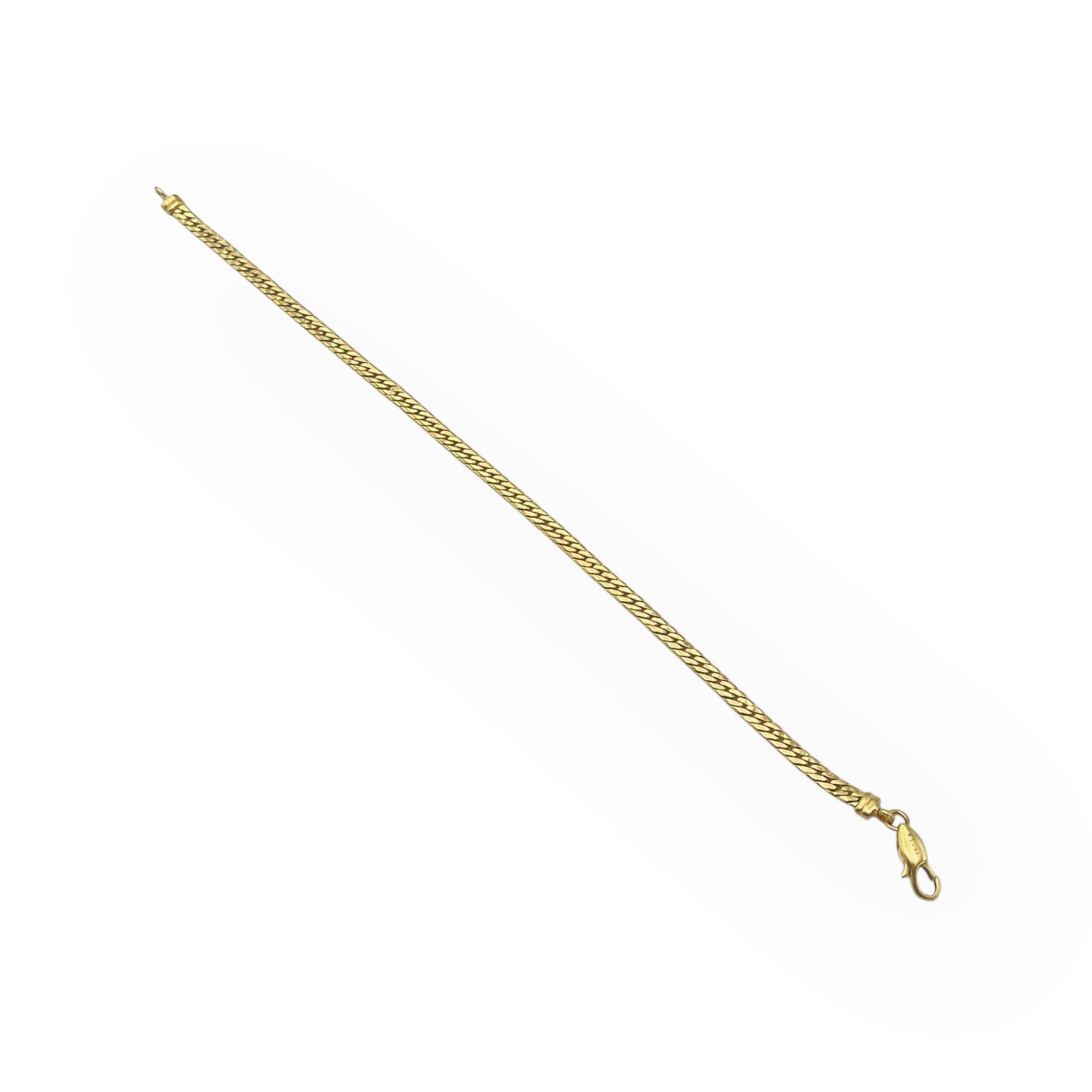 Cet élégant bracelet maille anglaise or 750/1000 est en très bon état sur l'endroit. Au dos (côté peau) un petit enfoncement mais ne se voit pas une fois porté.
