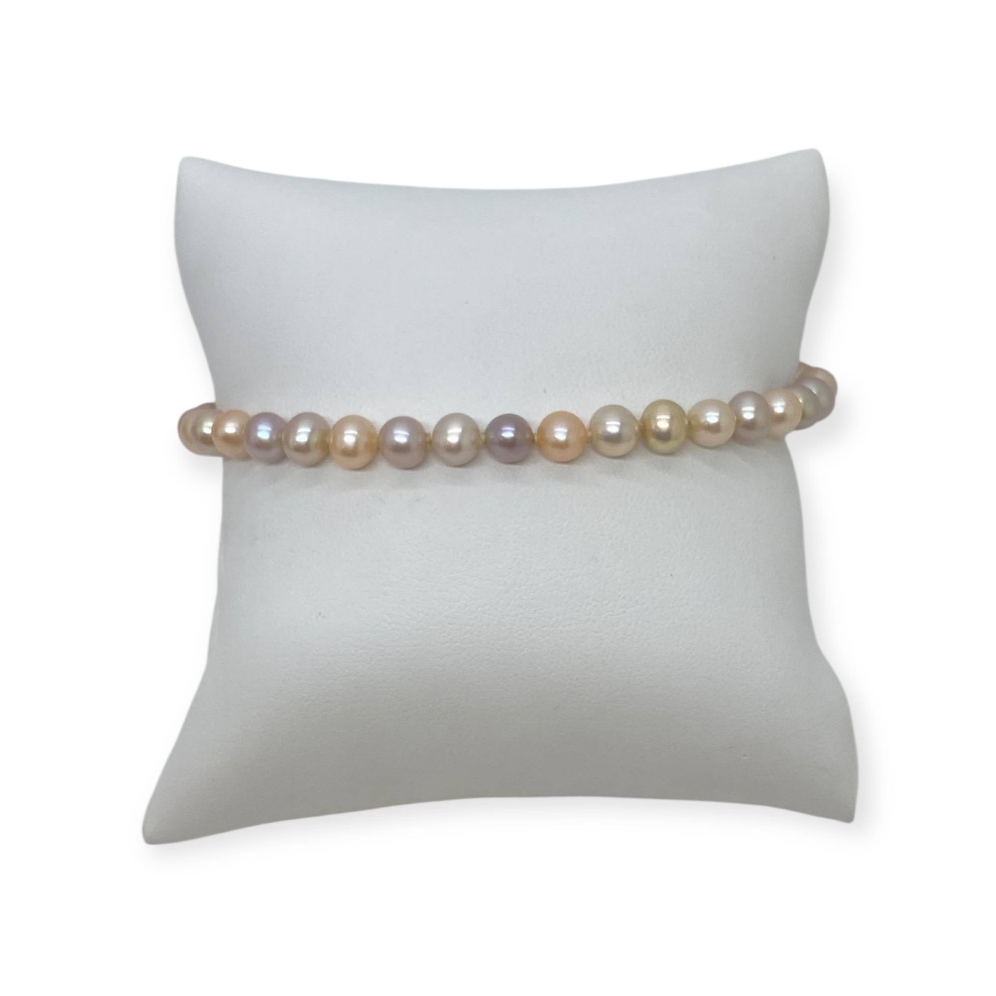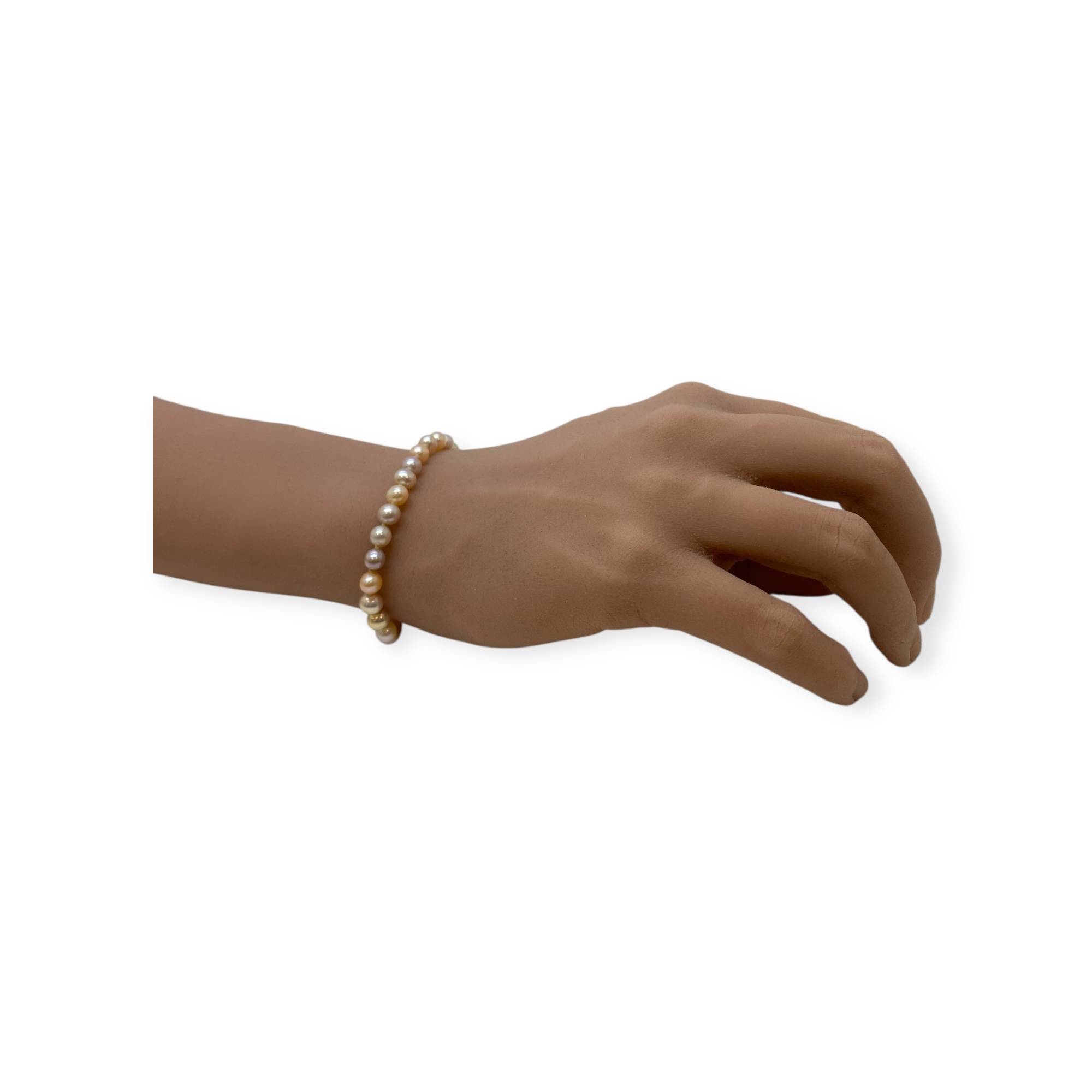Joli bracelet avec des perles roses sur une monture en or 750/1000 (18k)
