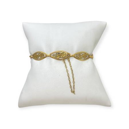 479,00 €Cet élégant bracelet maille anglaise or 750/1000 est en très bon état sur l'endroit. Au dos (côté peau) un petit enfoncement mais ne se voit pas une fois porté.